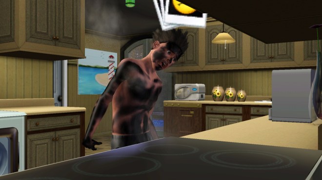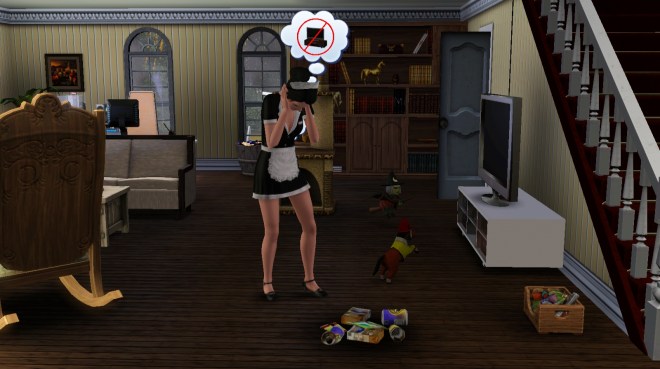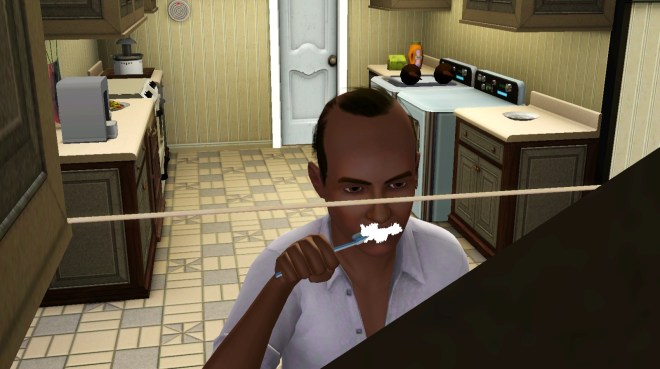 Also the game gave us two maids. Both of them useless. This one brushed his teeth in the kitchen…