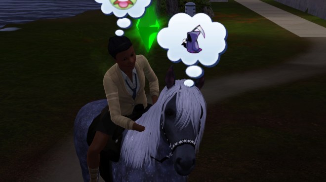 So Zo’s LTW is to be an Equestrian or whatever, which is great since Edith just died and someone needs to continue the horse line. Added bonus is that she is unfazed by Chardonnay the Ghost Horse (or I think that’s Chardonnay).