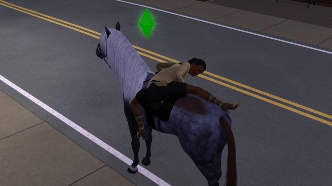 Seriously. Zo had maybe one point of Riding Skill, and since Cobalt panicked in-between lots, that apparently meant running around in a panic around the WHOLE TOWN.