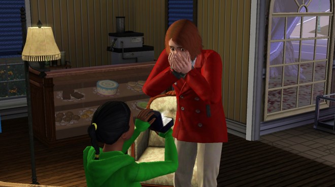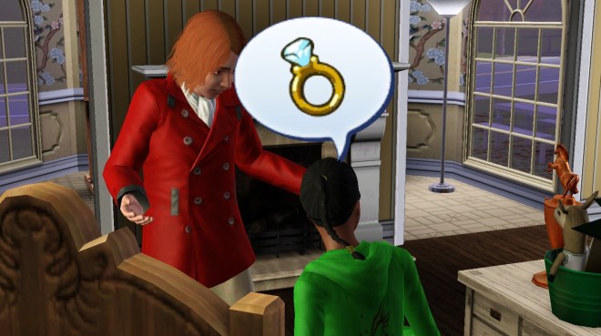 Hold up, they’re already engaged! Last episode! I guess my game did crash, or the engagement didn’t go through, or SOMETHING.