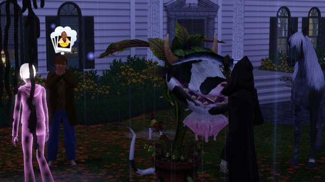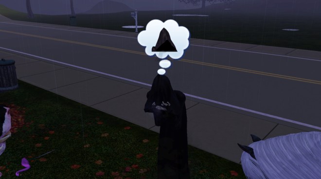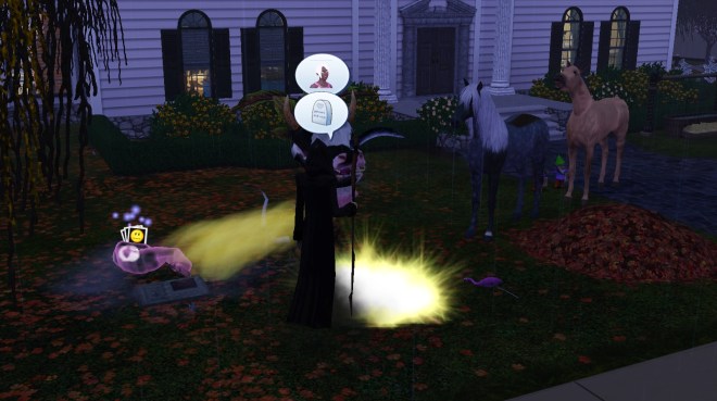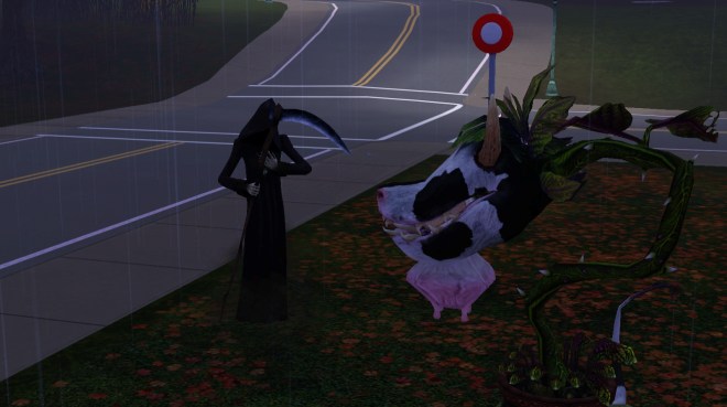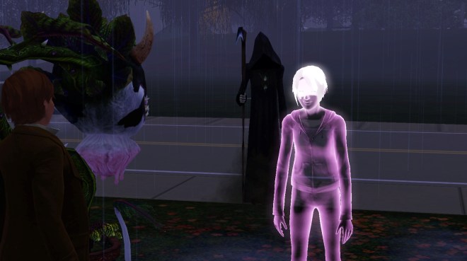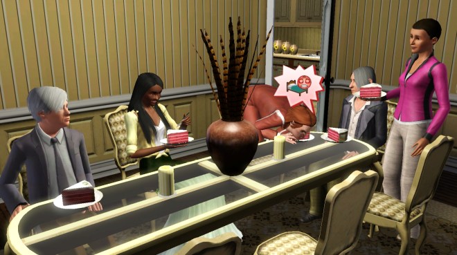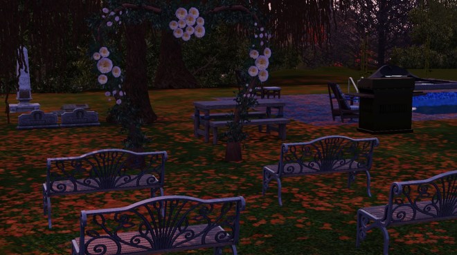 And that’s also it for this episode, because I’m going to be late for work. I was laughing a lot throughout photographing this sequence. The wedding party did not care that someone had died — nope, all that mattered was the marriage and the cake. Sim values!