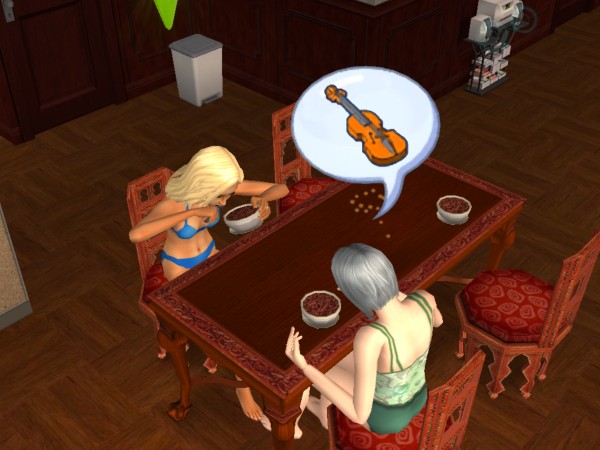 Forget silly dancing, it’s time to skill, skill, skill! Terry is doing quite well with the pottery, and as you can see, is beginning to act a lot like his father. He isn’t as much of a Pleasure sim as I thought he’d be.