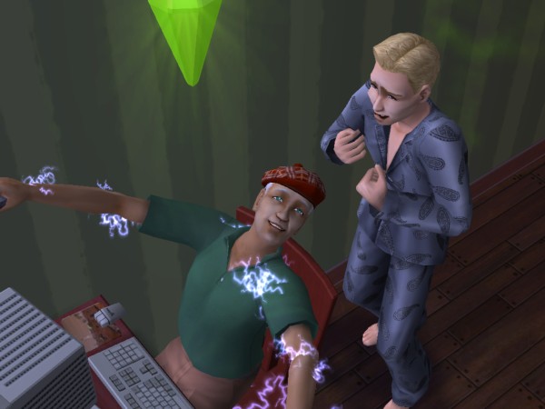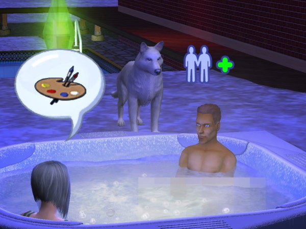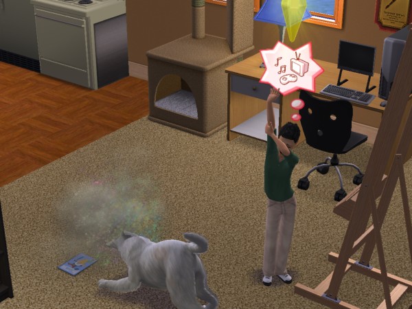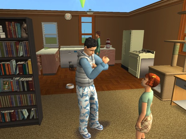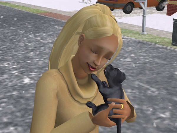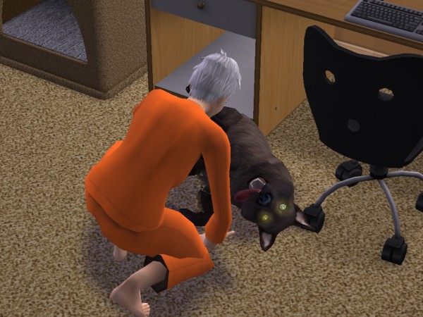Sadly, despite being able to give him a belly rub, my sim did not get bitten. Grrr.