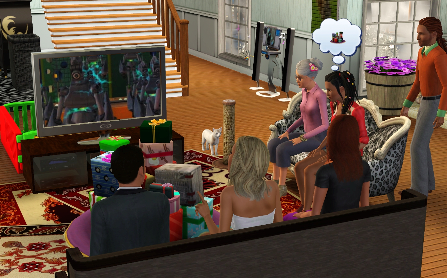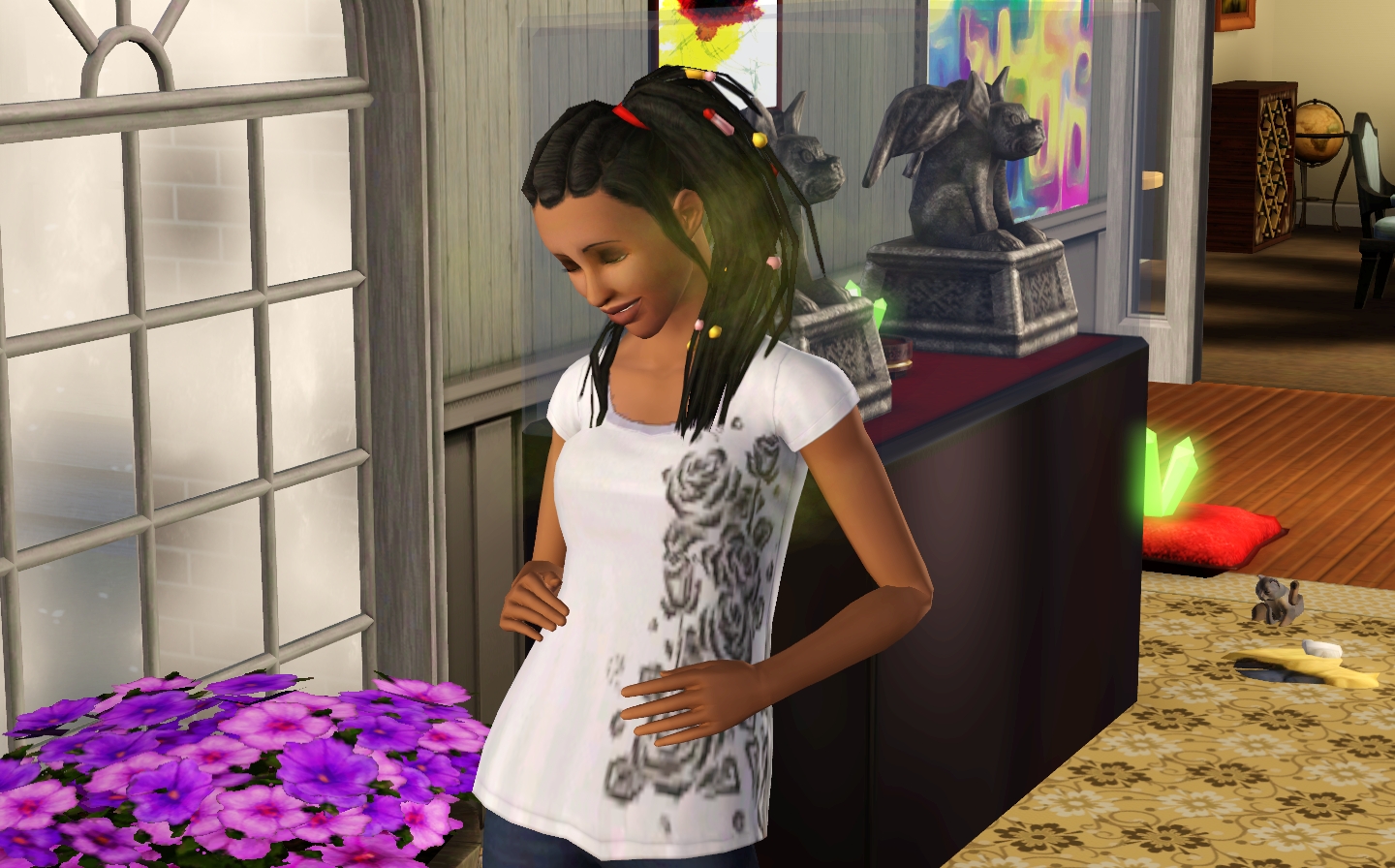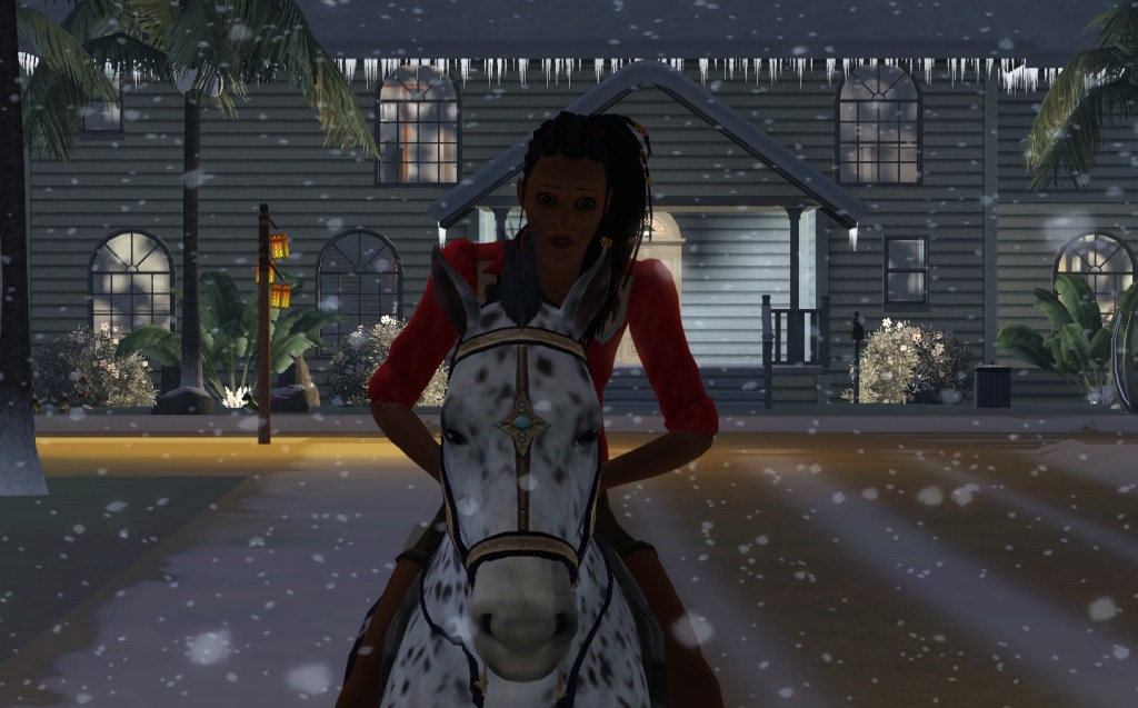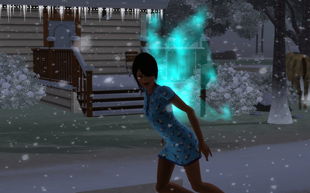 “You know, we really ought to be used to this by now.”“Yessss, yessss, it worked, Daddy!” “MWAHAHAHA!” “MWAHAHAHA!”“Excuse me, horse, this is not a salt lick!” “Mmmmm, dried ectoplasm!”I went digging through my Sim’s memories and I think that this is Leleani, one of Bex’s kids. Sorry, Bex.“Well I guess that cowplant taught me, eh, Grim? Daddy’s not going to be impressed with me.”“I’m telling you, this place is monstrous! They ignore their kids, serve rotten food, and they just killed someone! Definitely the go-to haunted house next year– oh shit, I think they heard me!”So I’m fairly certain that we have two parties going on in these photos. That or we combined two birthdays and Christmas into a neverending night.Okay, on second thought, maybe it IS one long party.