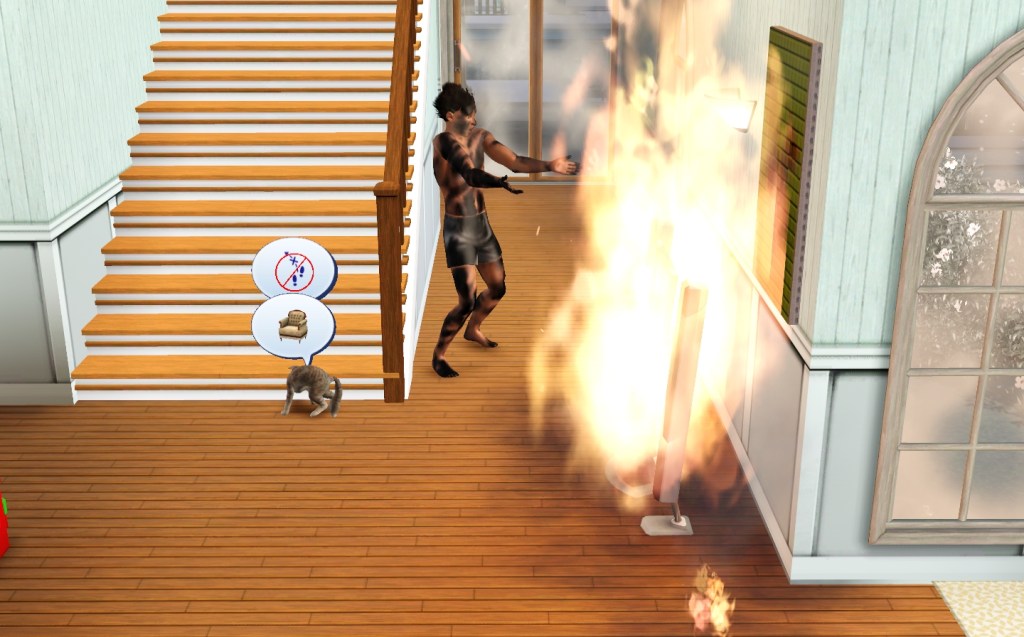“Ow! Stupid cat! These shoes were NOT made for this!”“So, what do you say? Be our nanny?” “Are you serious? Your cat just attacked me!” “Oh that’s just how he shows affection. So, $10 an hour good?”“God I love having a sauna. This is so much better than figuring out why that lady was screaming.”Lady, maybe it’s time to go home.