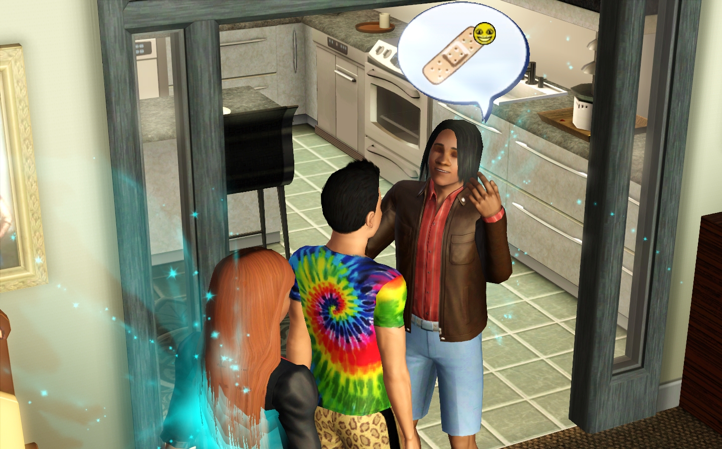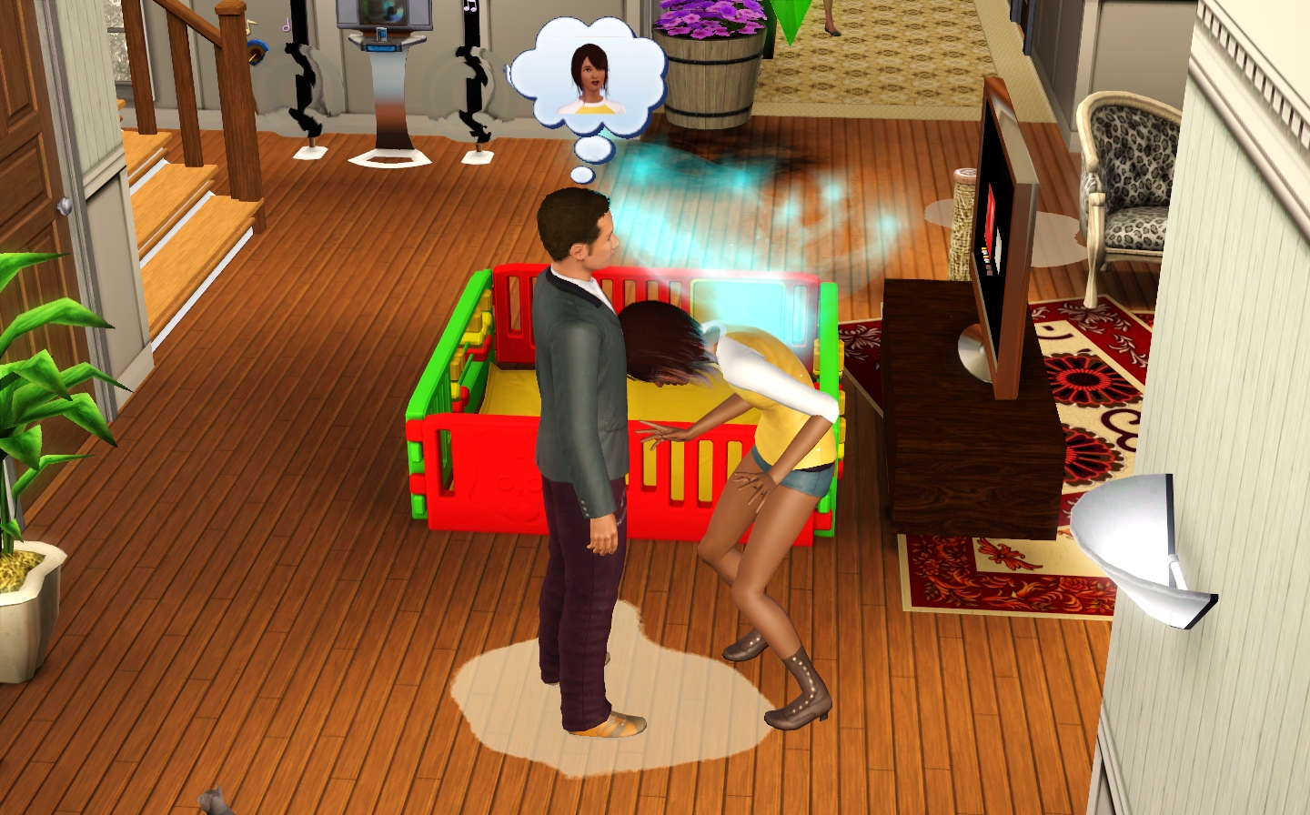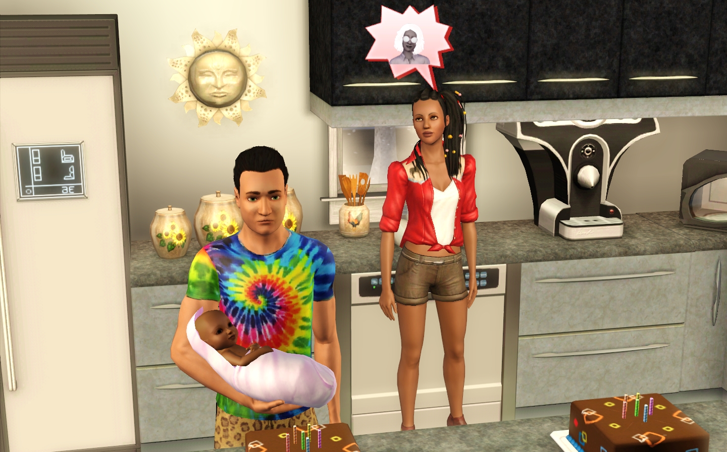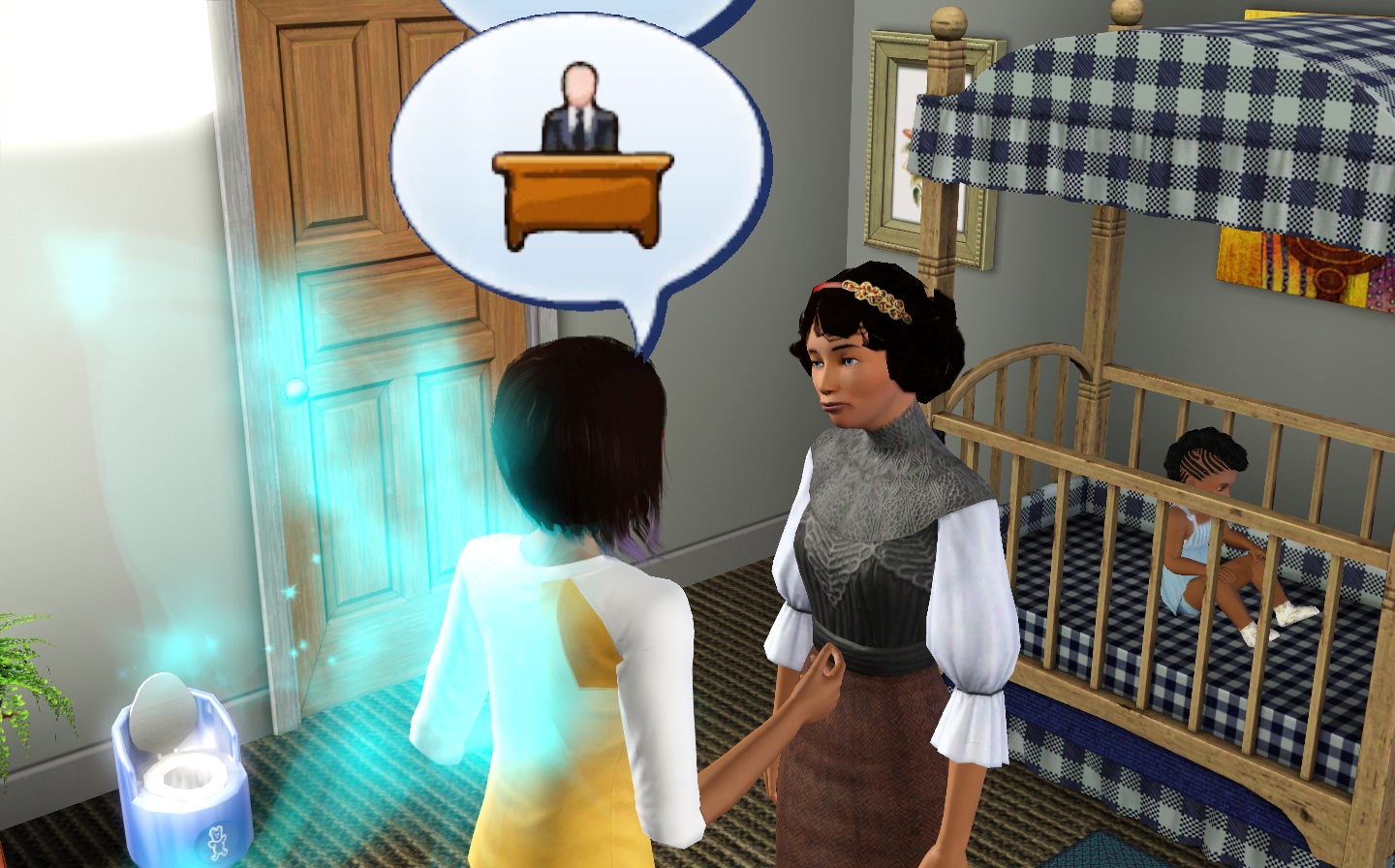 I don’t care if the mandate came from Will Wright himself, no walking around naked with the kids in your thought bubble!Thankfully, Anna is safe from her crazy family, though not from choking hazards.