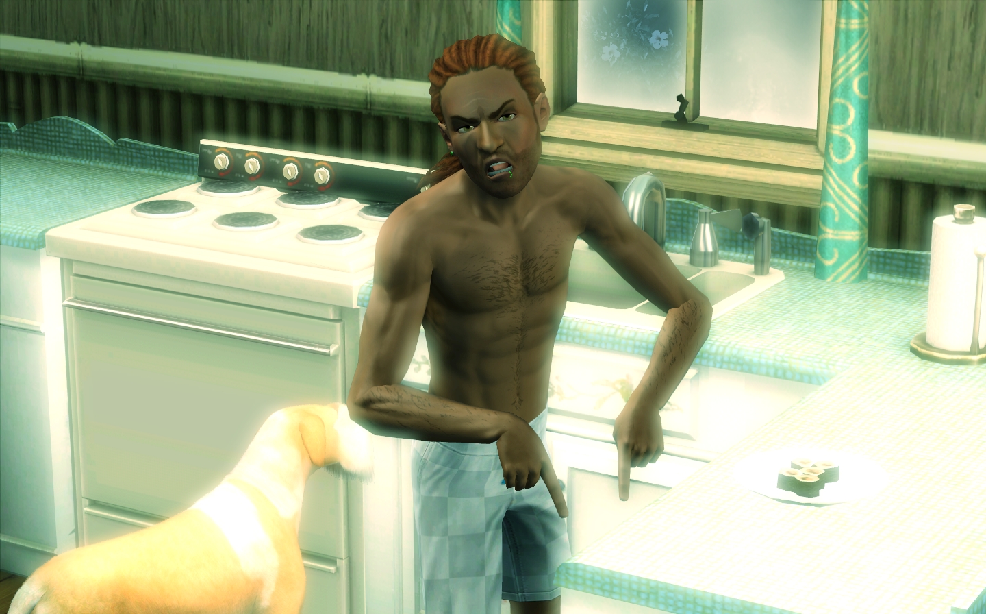 “Dad! I’m exhausted but at least I have bladder control!”“Wow, honey, did you think that would make me hot?” “Shut up Dan!”If I had to guess, Captain Doofus here got out of bed JUST to pass out on the floor. I hate when Sims do that.“Do you see what this random-ass dog did? Do you?!”