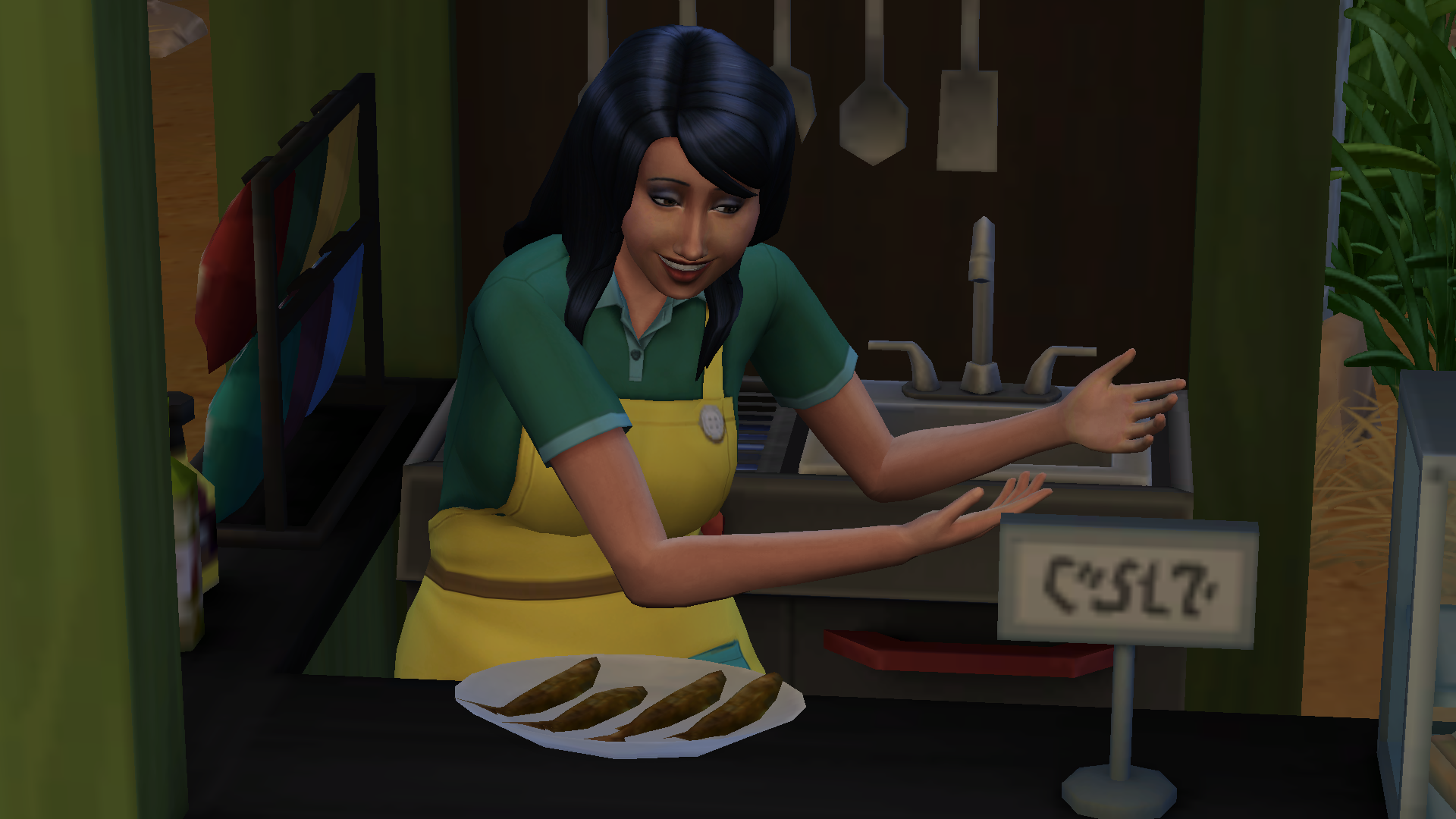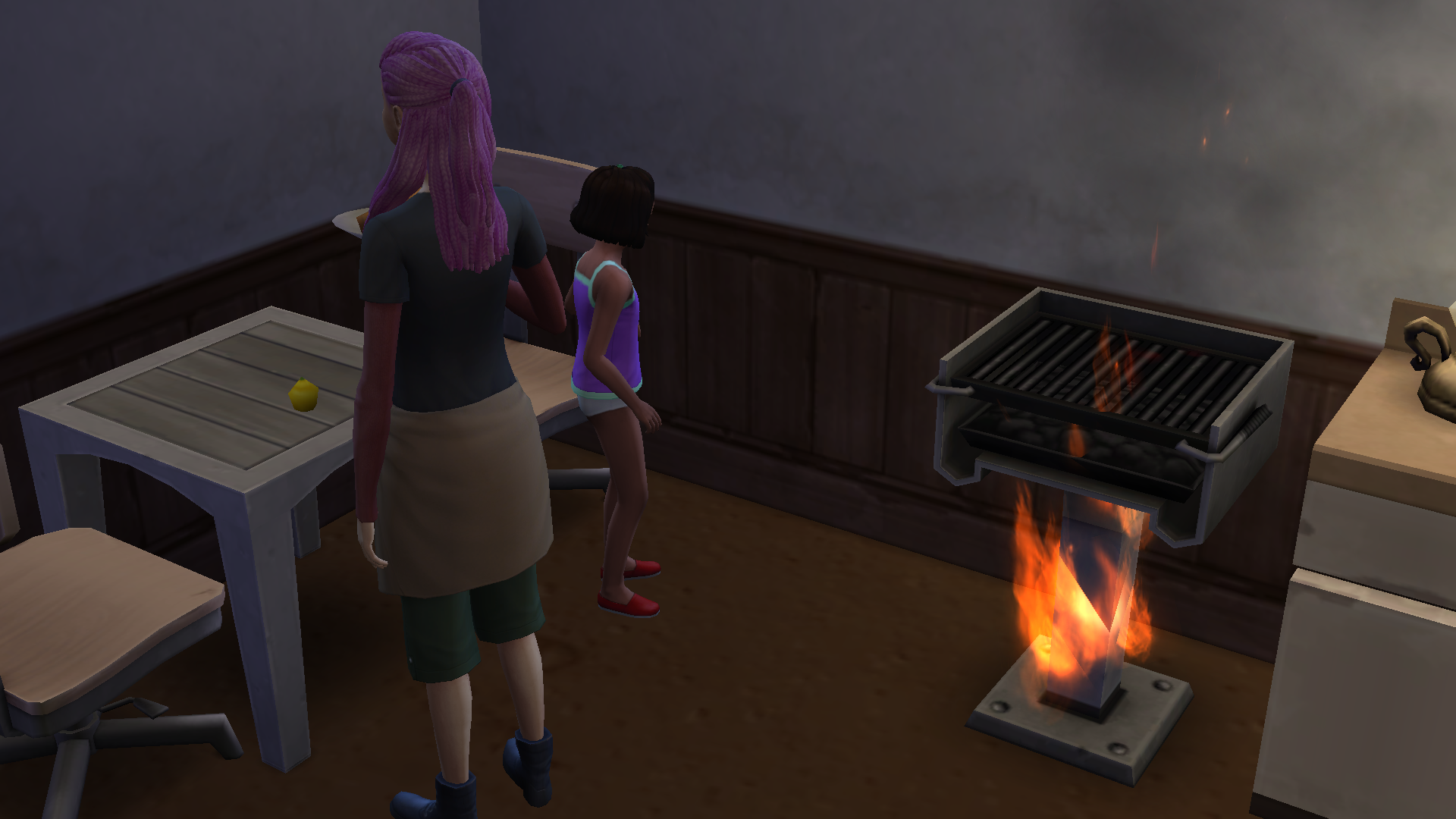 So what actually happened is that for reasons I do not know, my Sim put the grilled fish down on THIS counter, and so when they closed up shop, they couldn’t get to the food, and presumably the grill at home is unusable. What’s a little starvation eh?