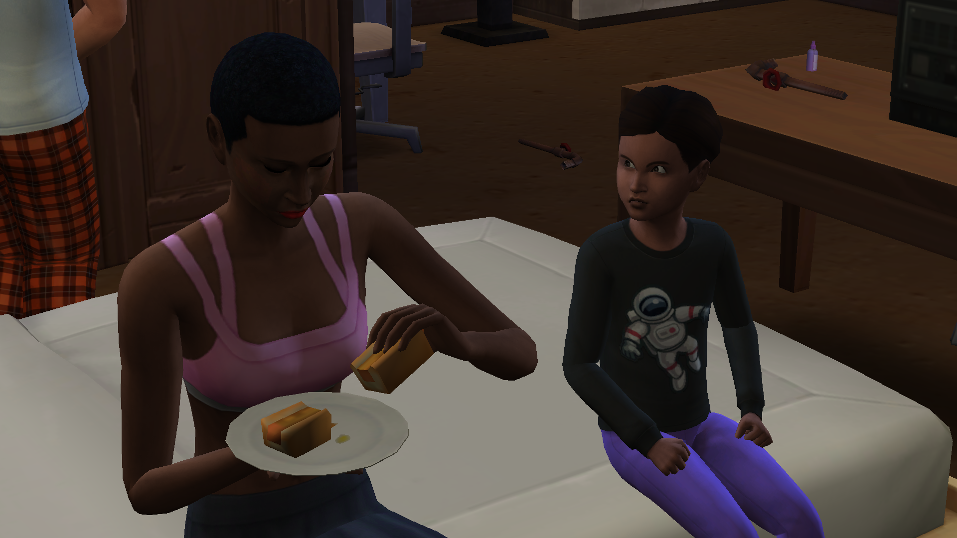 Both kids rolled “Neat” as a trait, so your guess is as good as mine as to why they’re such grouches.