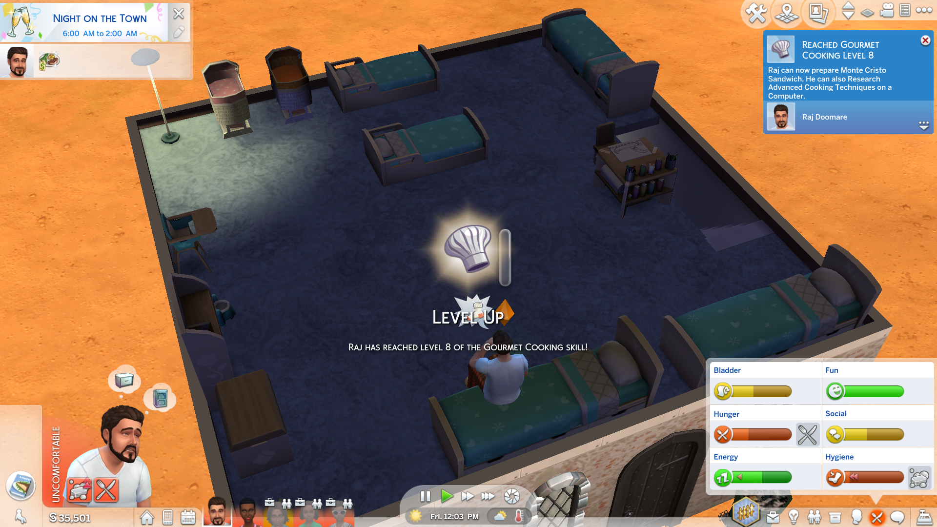 Okay, confession time. I cheated and bought the Gourmet Cooking book, as there is no way to get the skill without a book, and while Casey could have gotten the perk to write any skill book, she didn’t complete her aspiration goals to do so. So faced with the choice of embarrassment from only unlocking one career in the first generation or the shame of cheating, I chose cheating.