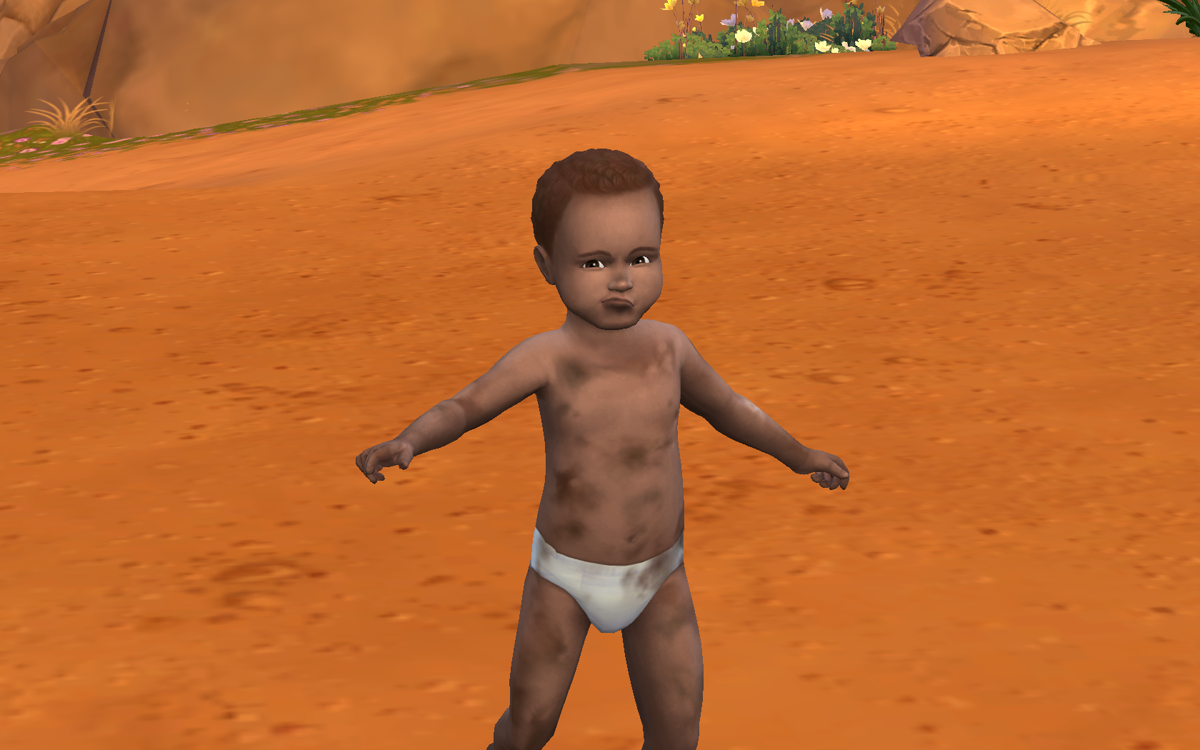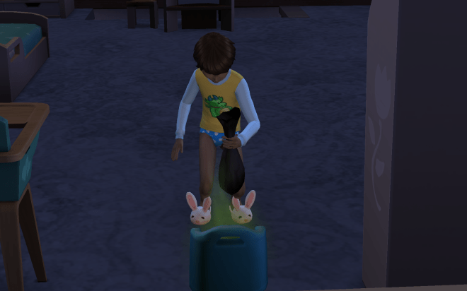 I’m sure I took this to show the kid’s default clothes, but instead all I see if a frown face forming the bottom of his sweater.