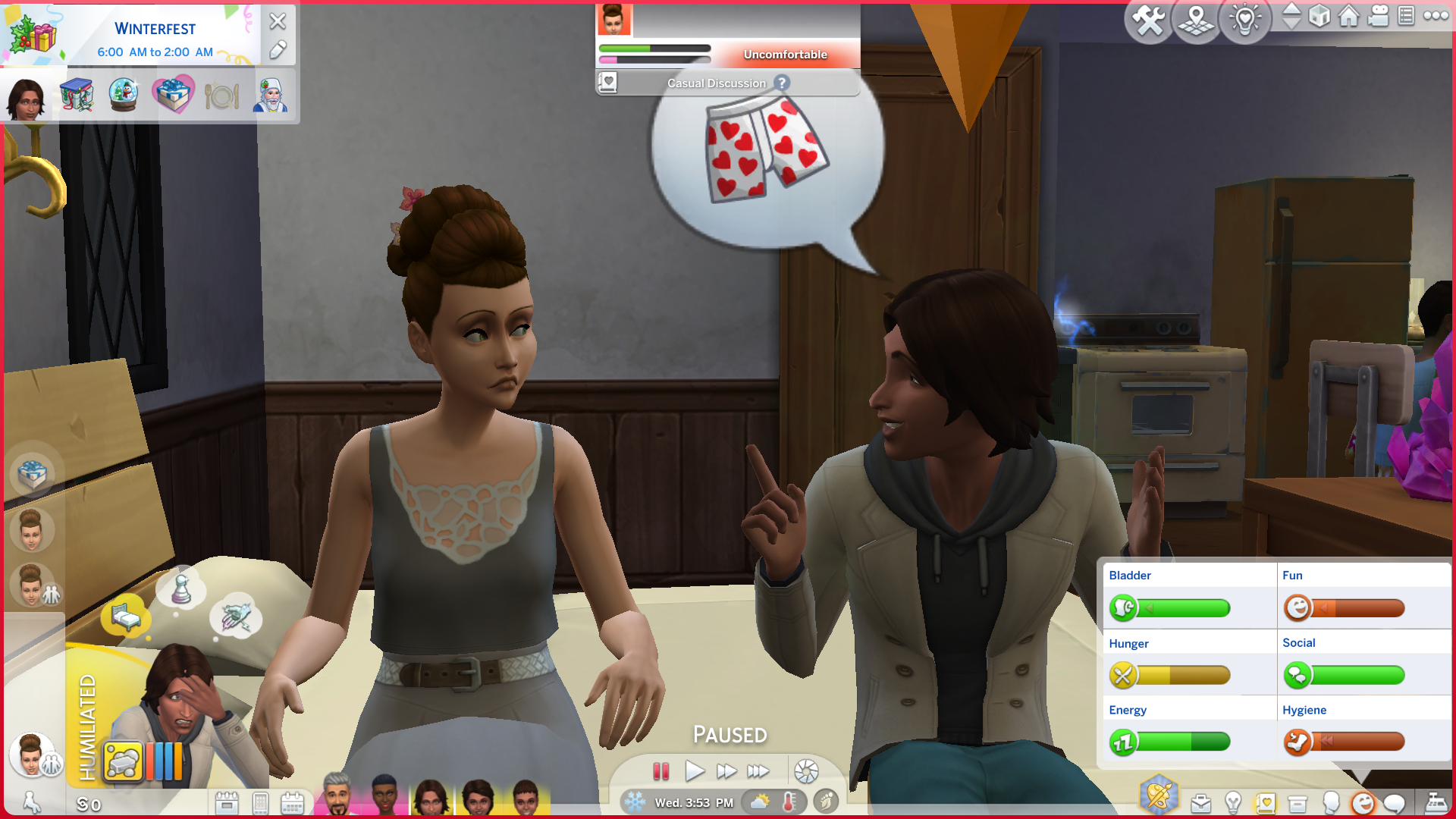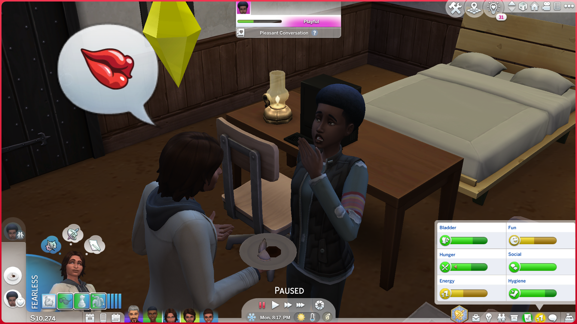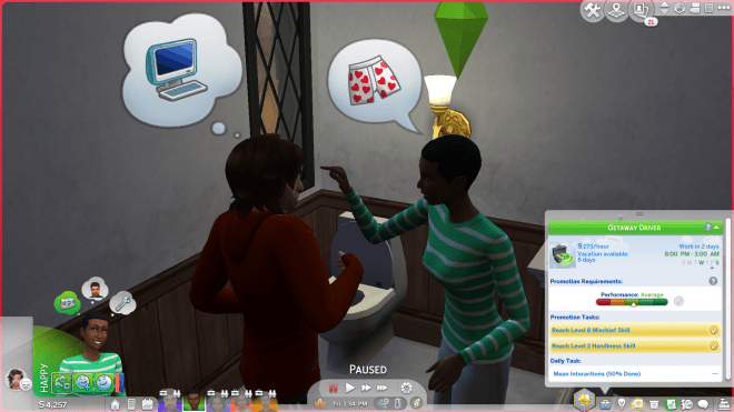Ugh I hate mean interaction tasks. I just suck at being a jerk in this game, but as you can see, we need to get that done so she can get promoted.