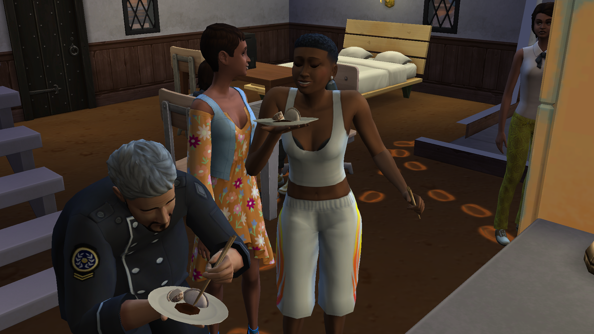 At least we can eat top quality food now, though. And for once Cassie is in her nice top!
