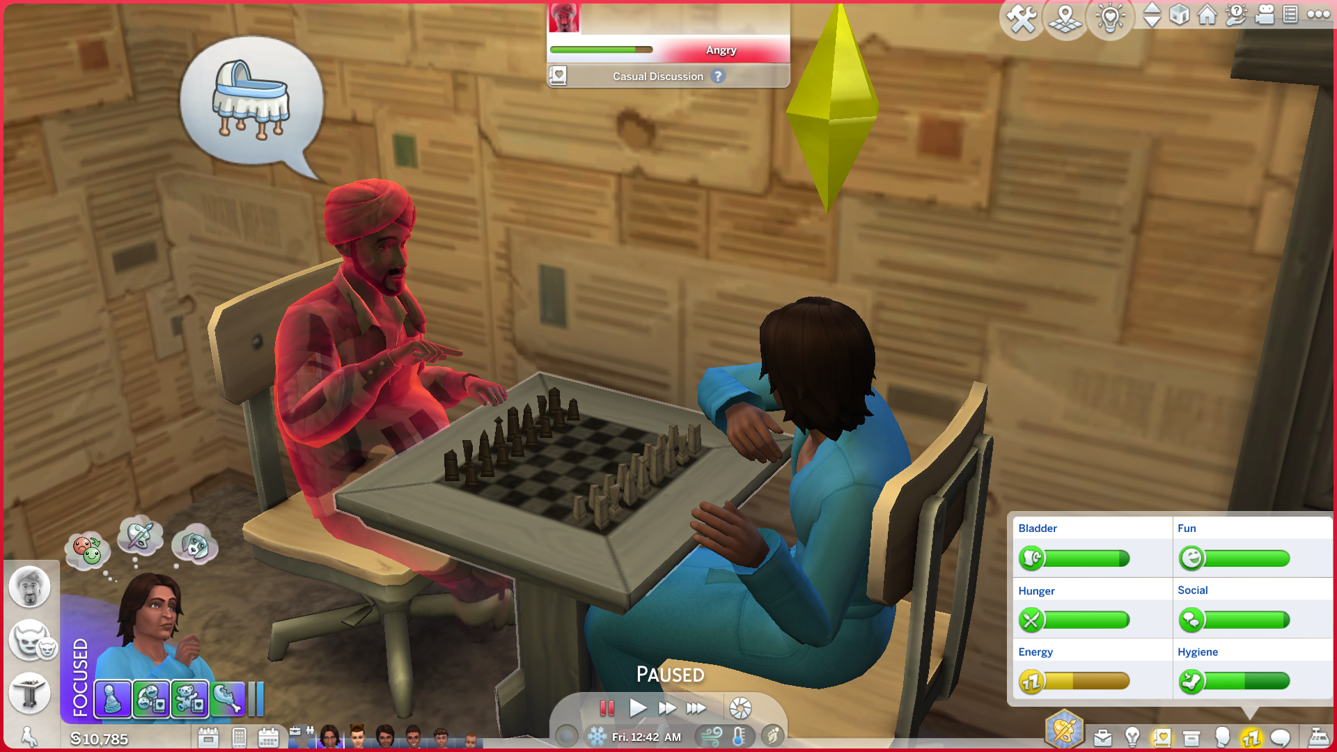 Poor Izaiah. With him being so close to unlocking Secret Agent and thus allowing people to move out, he’s trapped at the chess table.