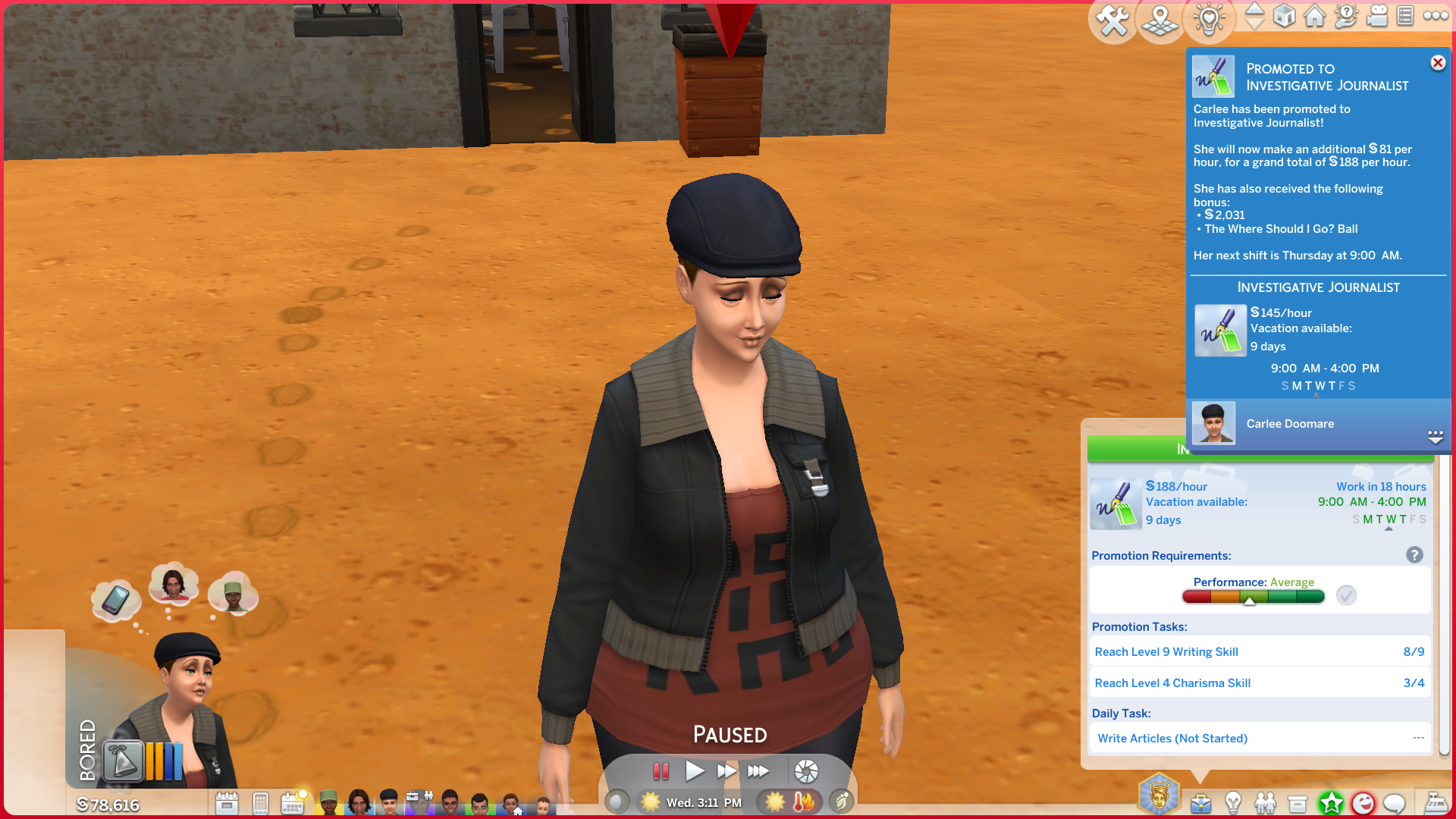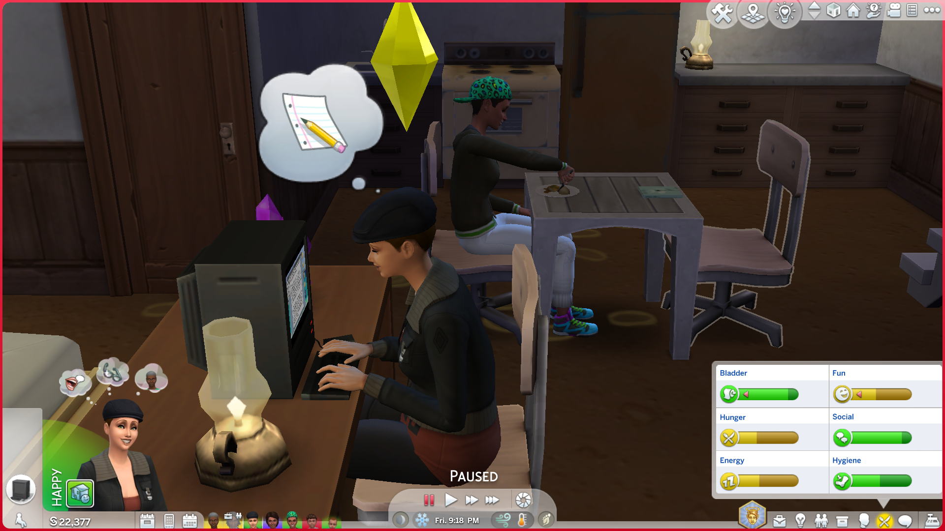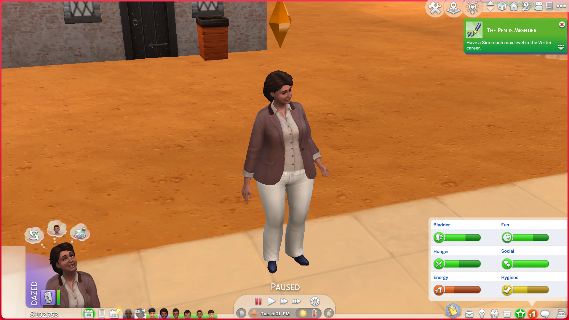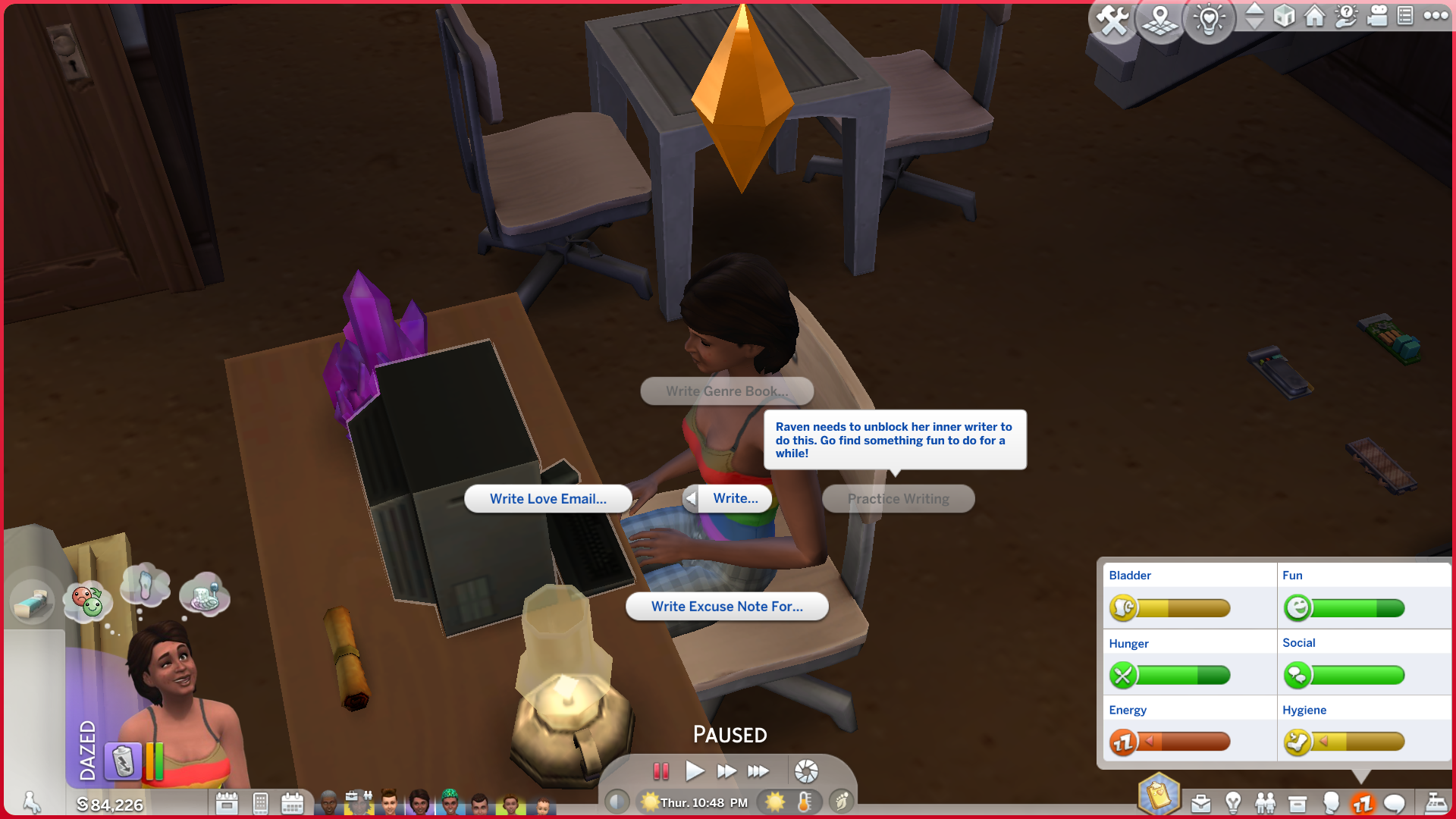 Oh the irritation I felt when THIS came up. As a writer myself, I’ve struggled with writer’s block for a long time, but I’m also not a Sim trying to unlock restriction in an apocalypse, you know? Thanks, EA.