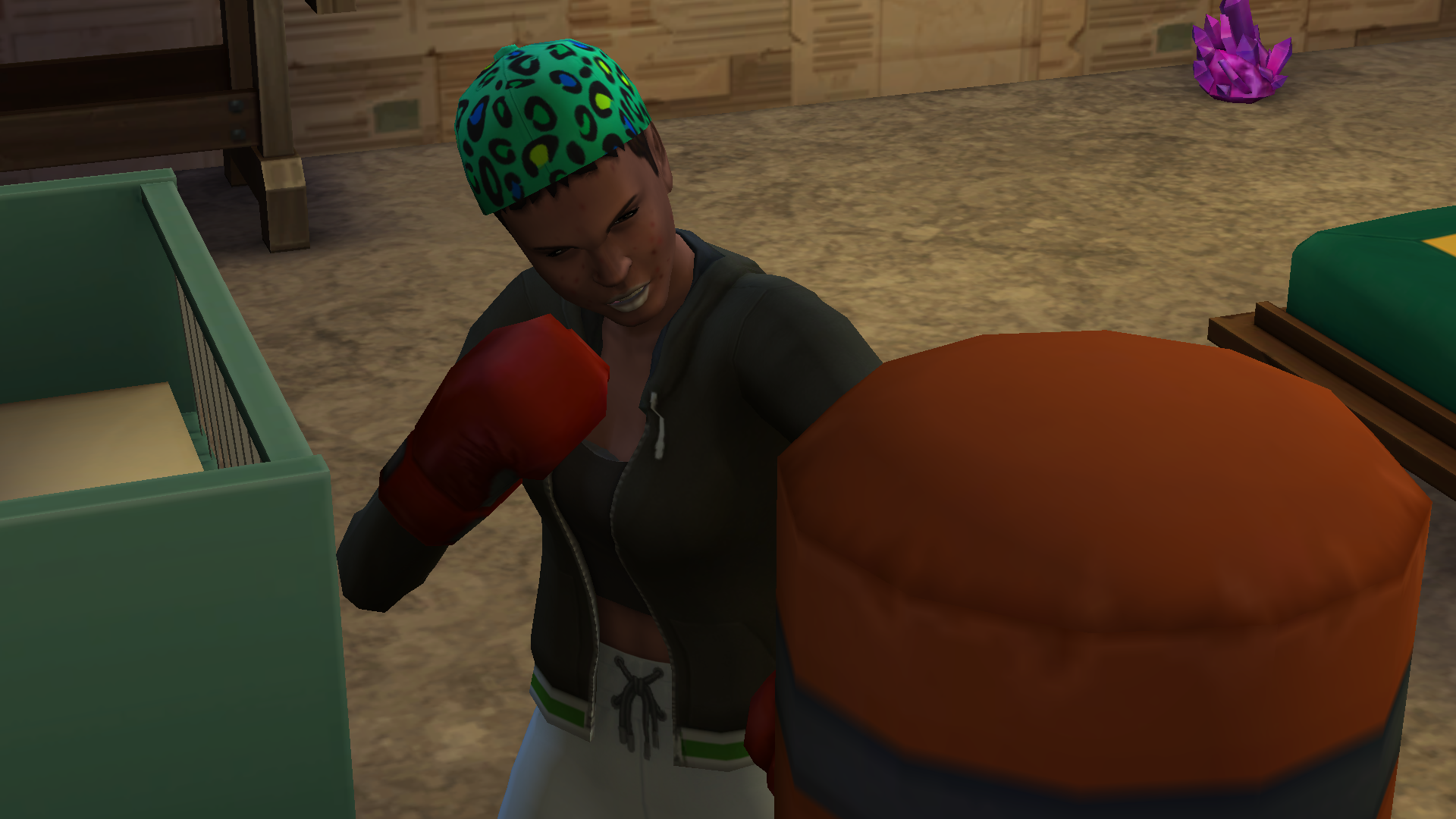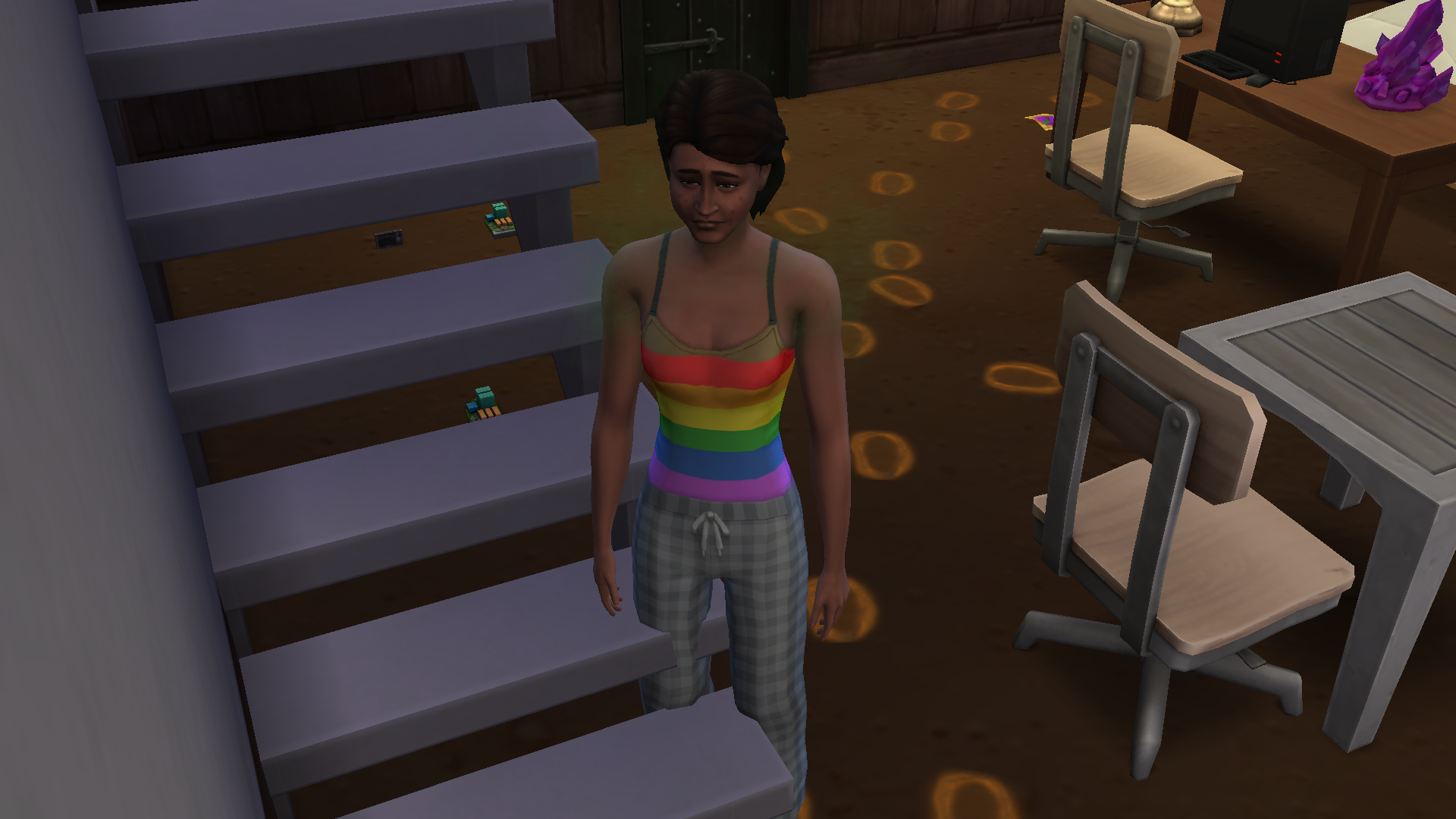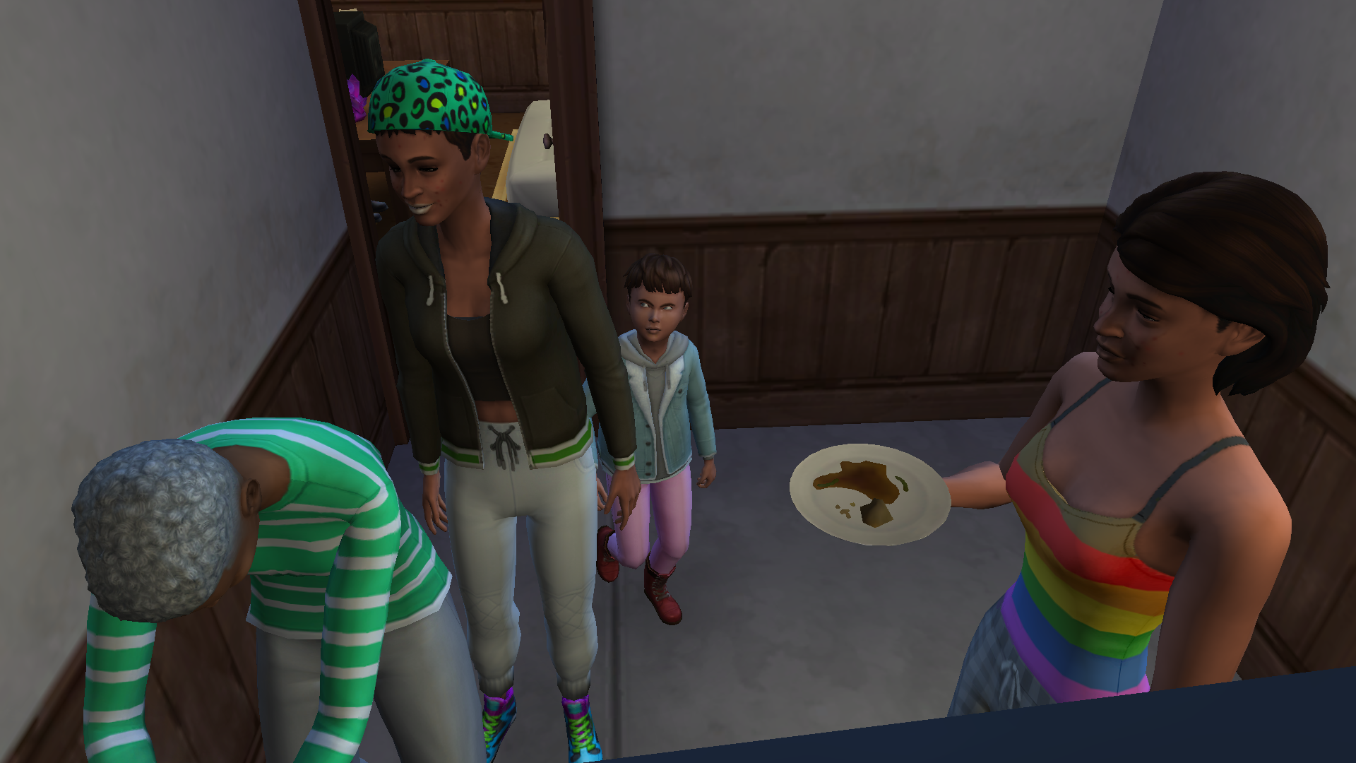 If you’re wondering about Casey, she’s still alive. She just spends her time glowering at the world and cleaning the house. Not bad things for a Sim to do.