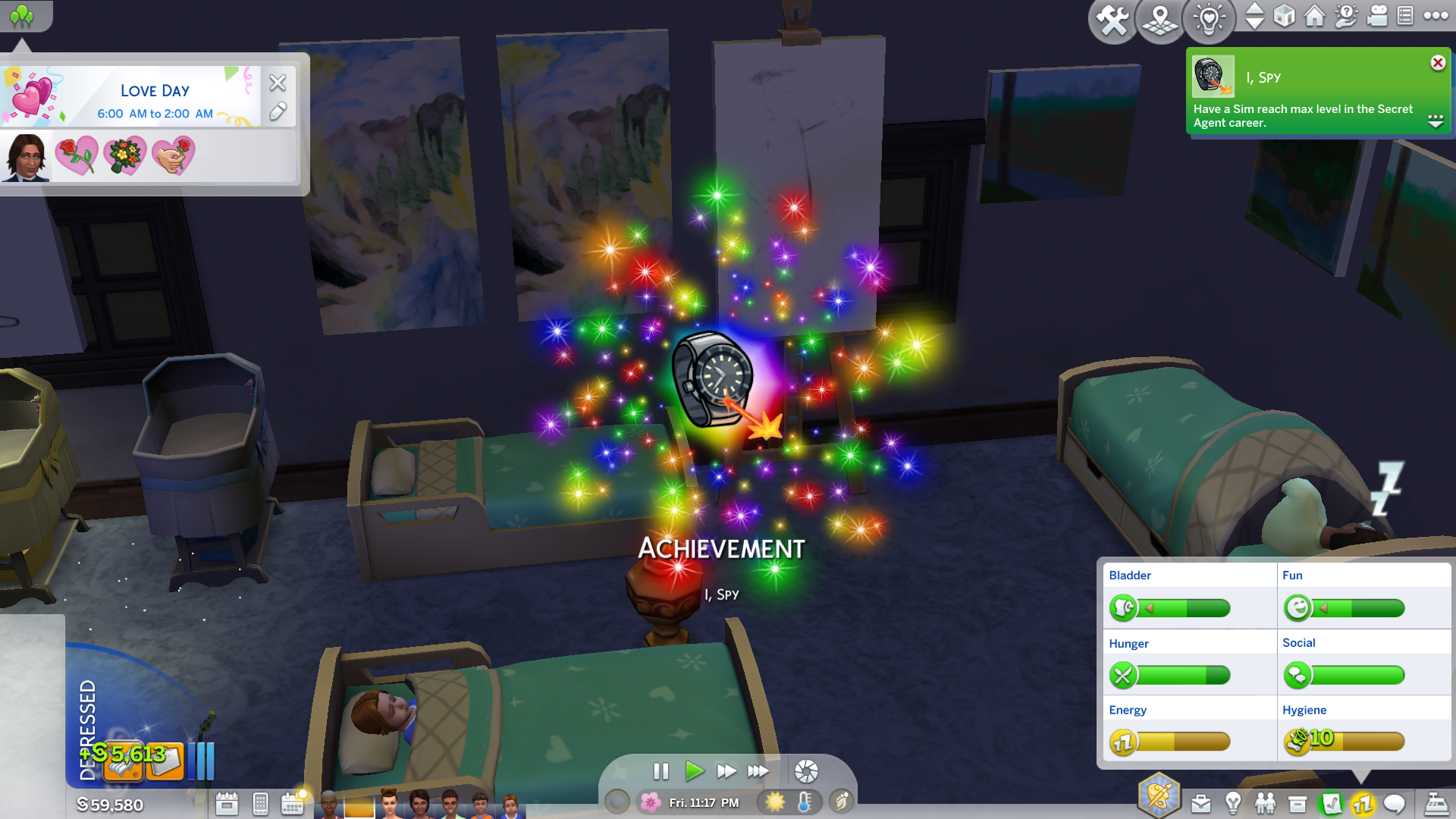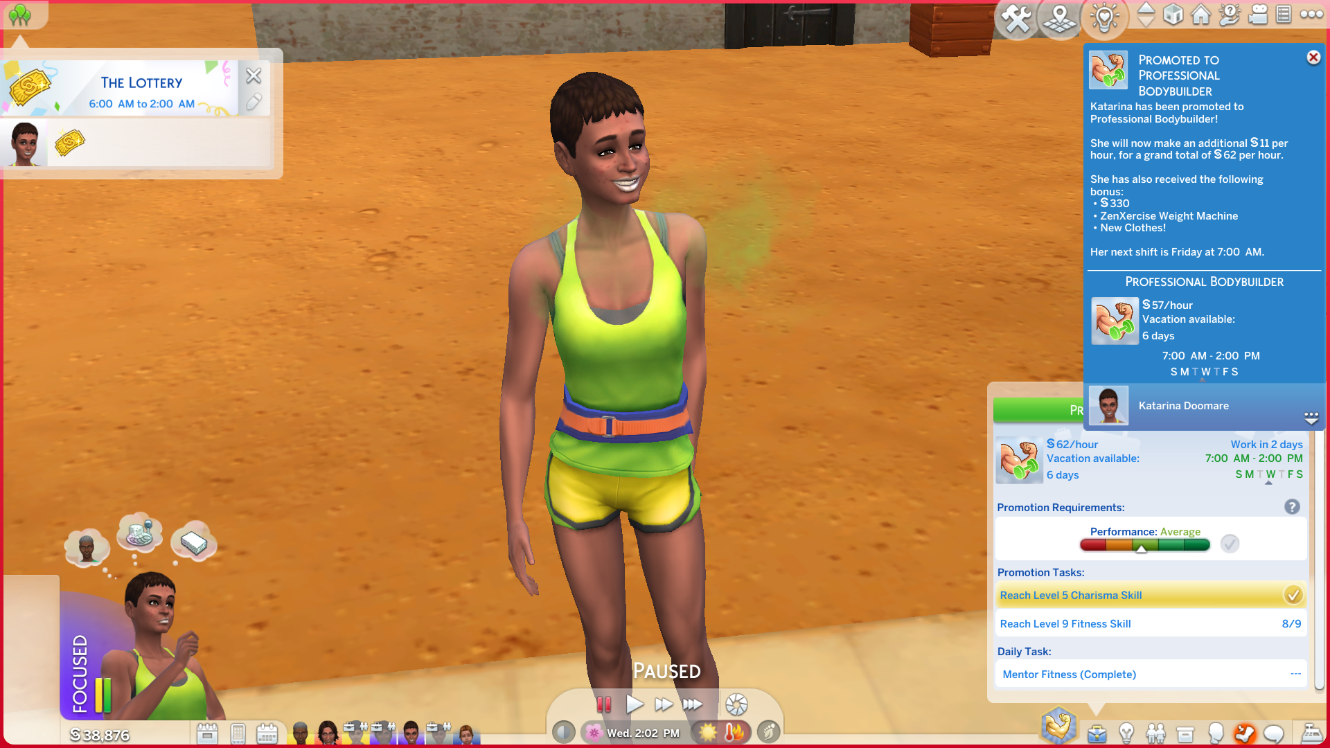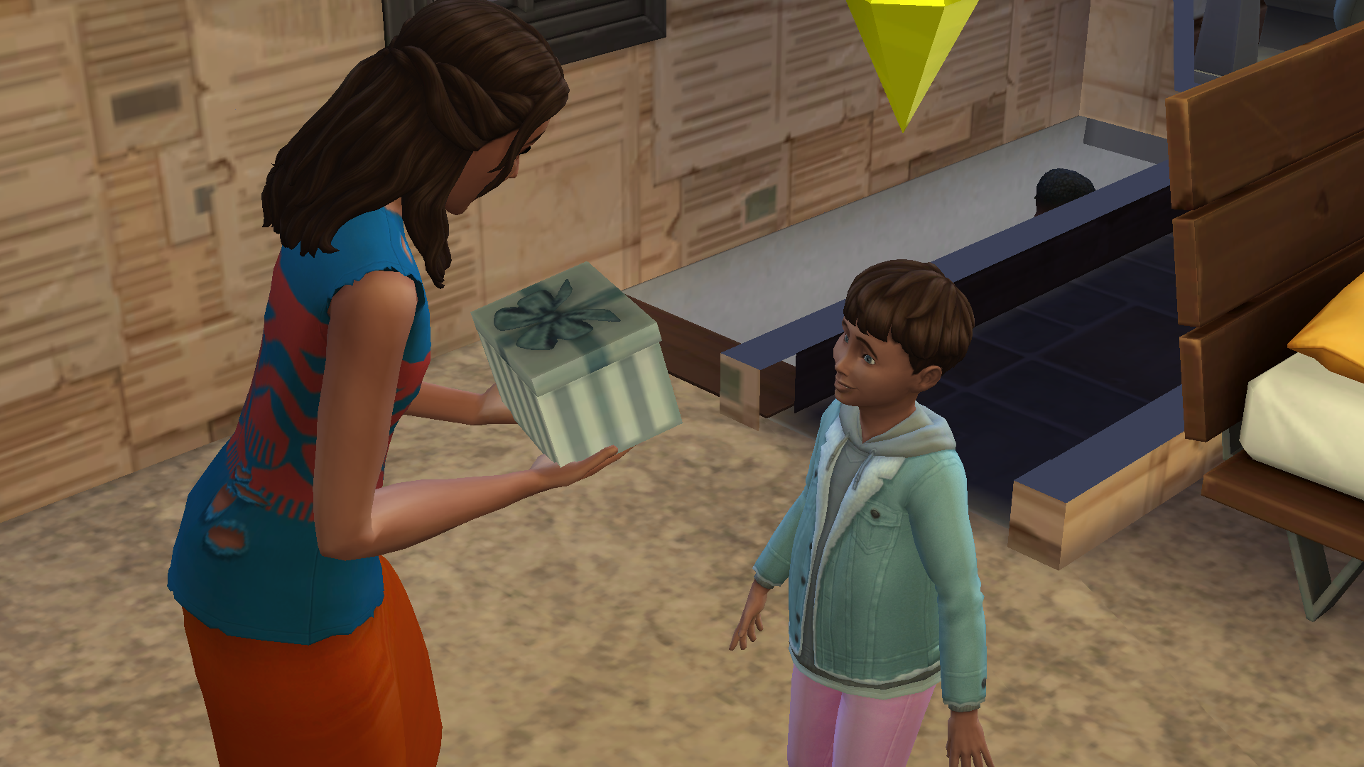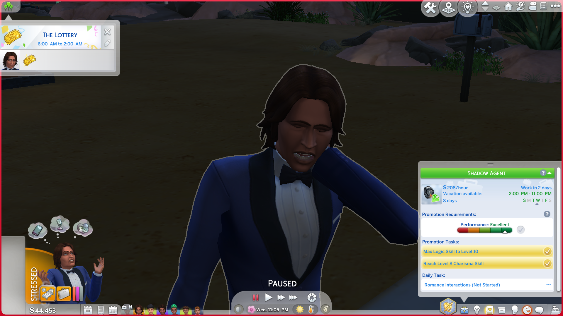 But Izaiah doesn’t! Yes, wonder boy can’t find the pleasure button but he could find the promotion to Diamond Agent! We can now visit community lots and move Sims out of the household!