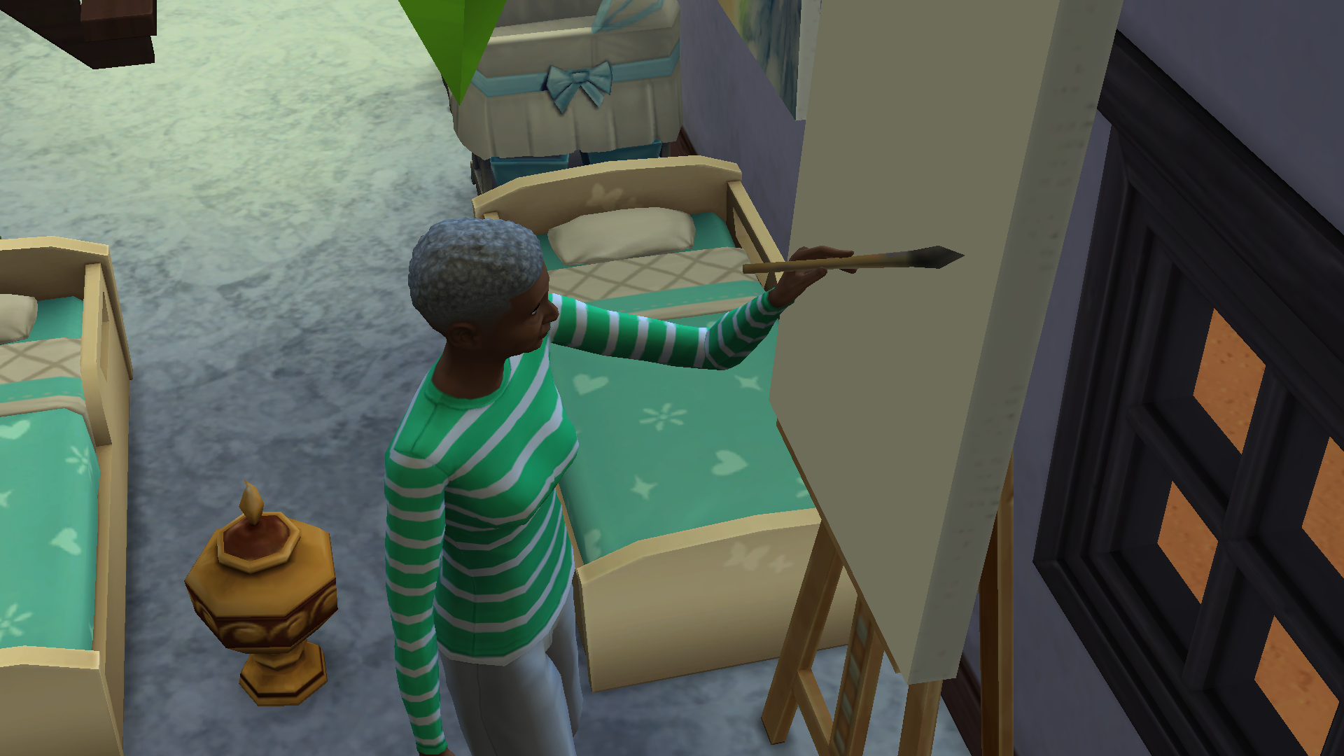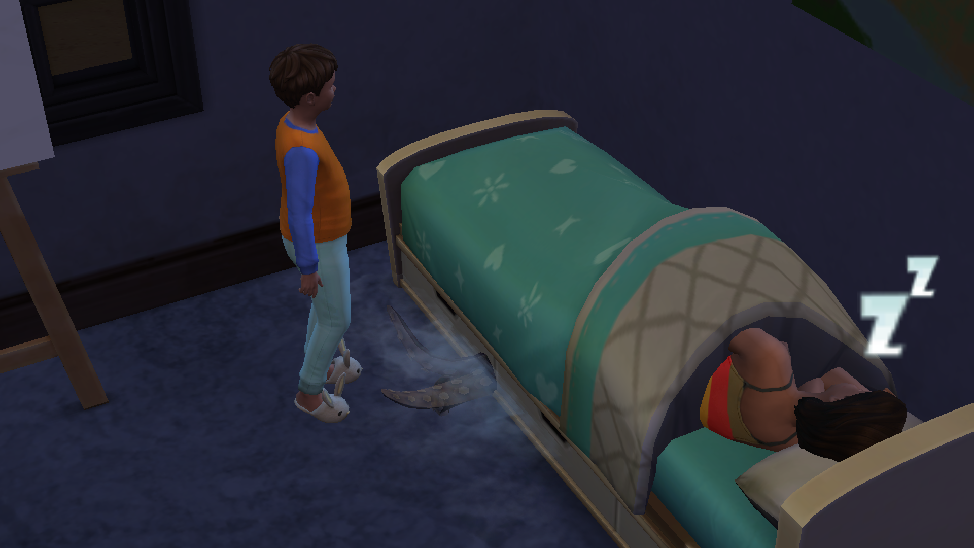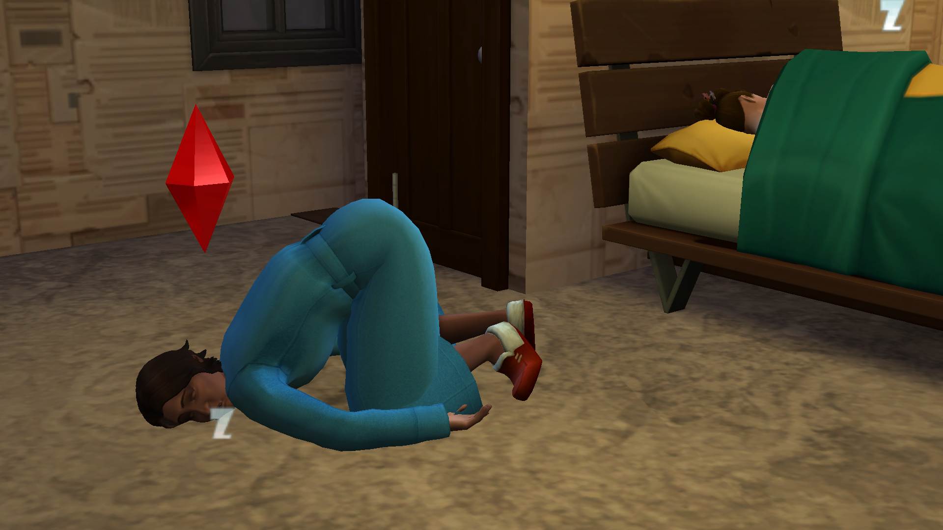 Me? Pushing my Sims hard? Of course I am. It’s the apocalypse challenge. Not my fault he decided another two feet to the bed was too much.