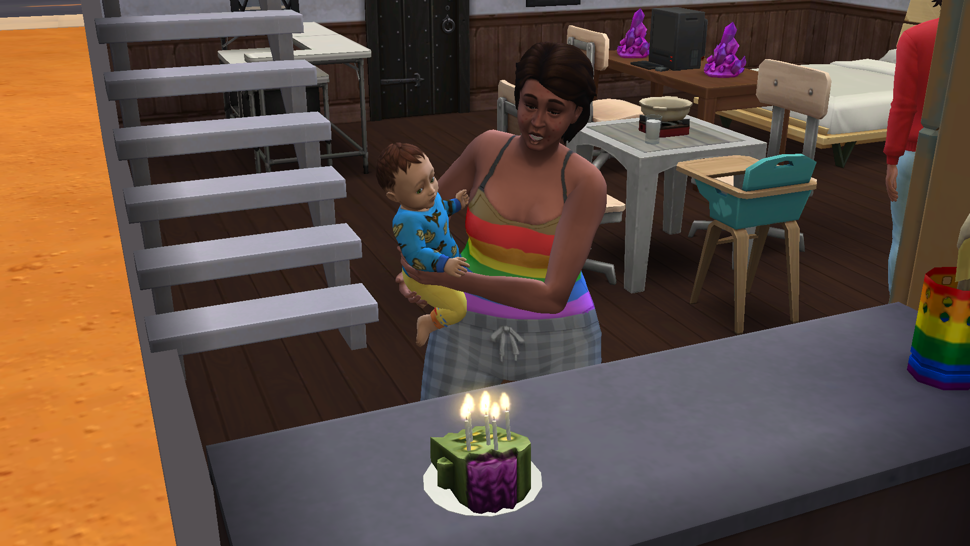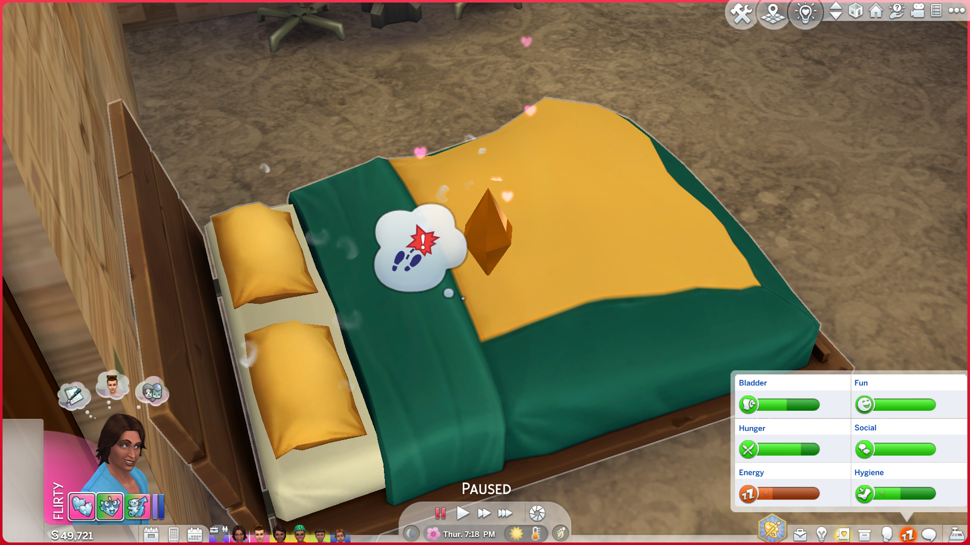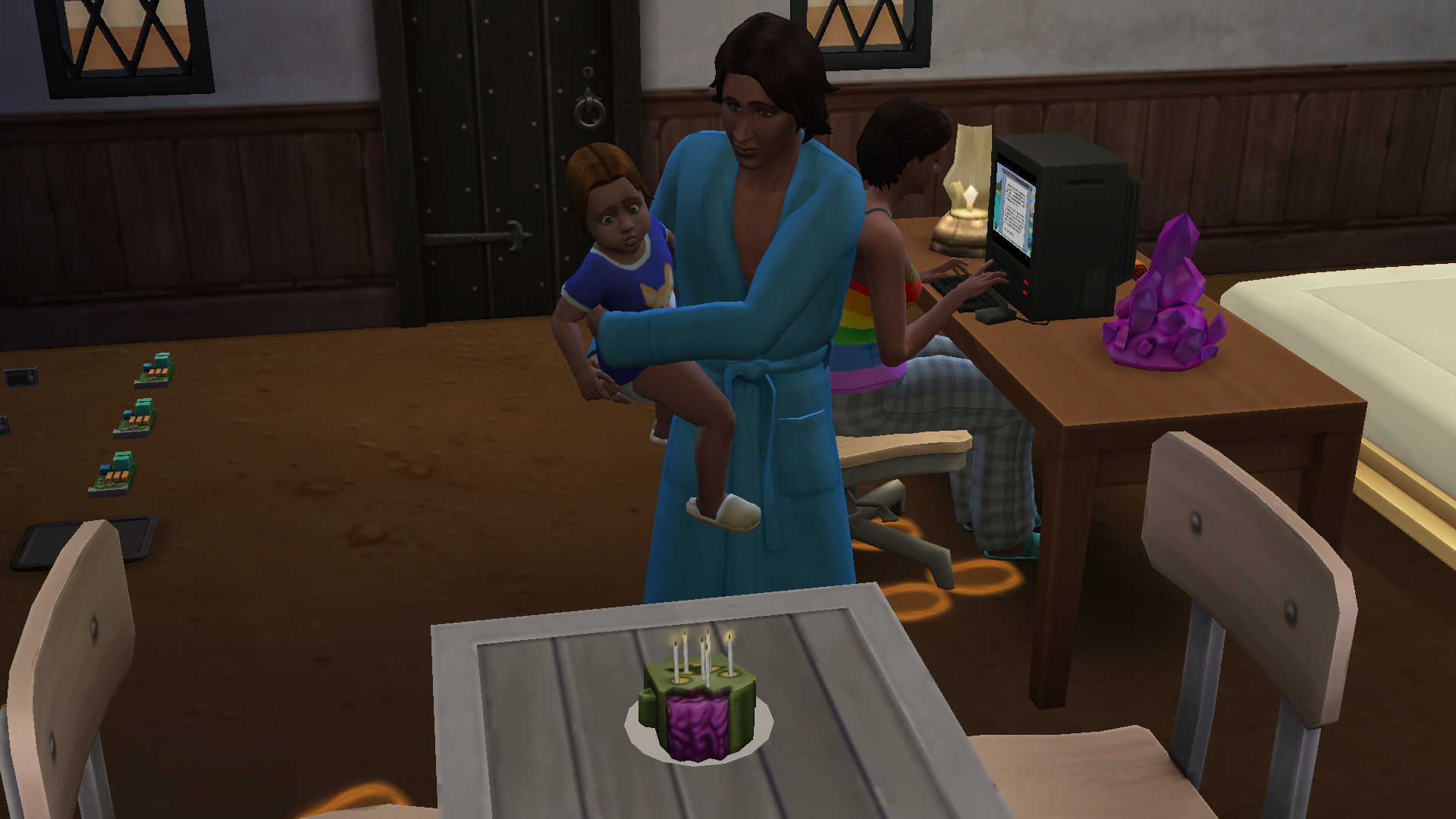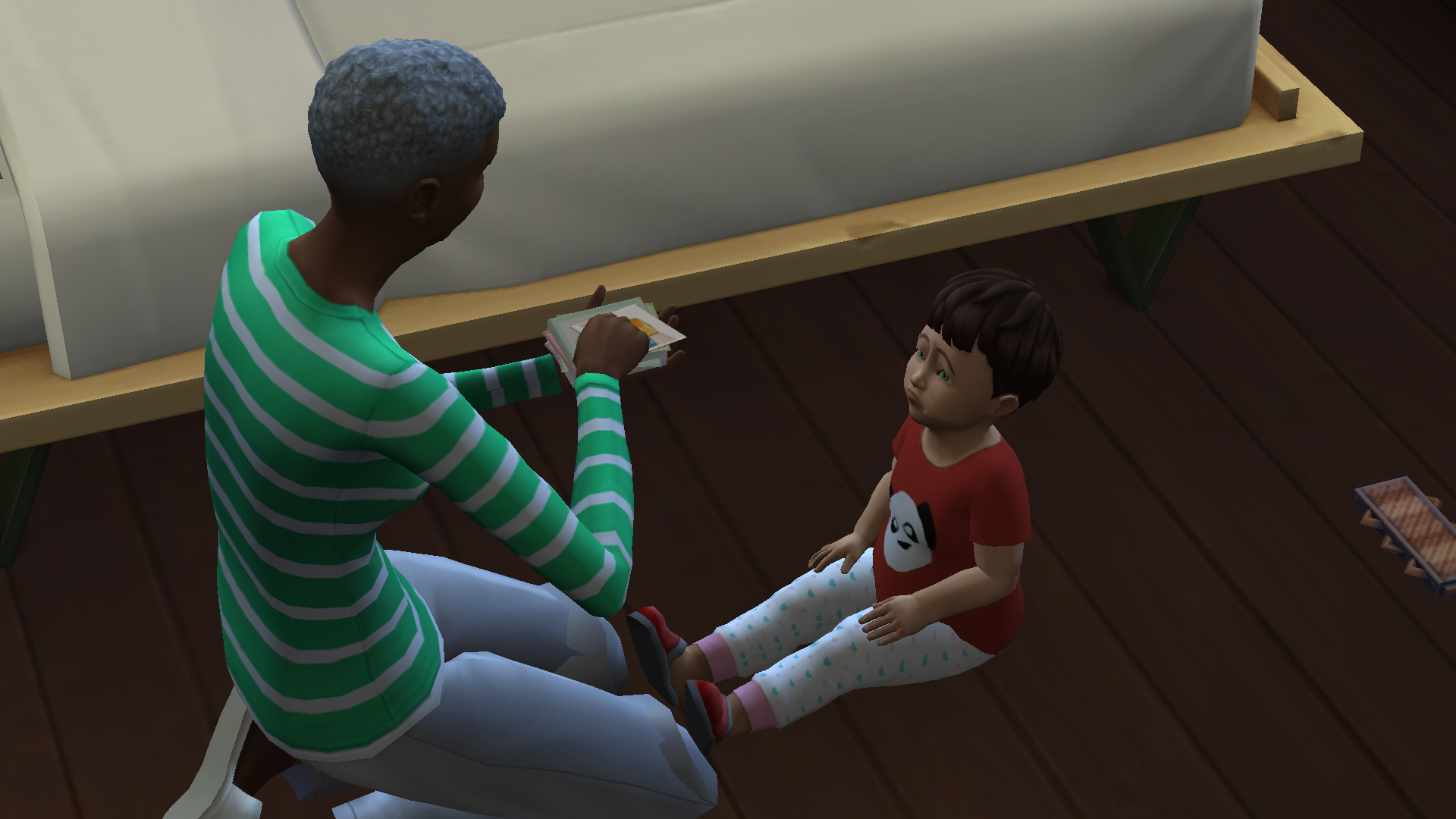 Me? Pushing my Sims hard? Of course I am. It’s the apocalypse challenge. Not my fault he decided another two feet to the bed was too much.