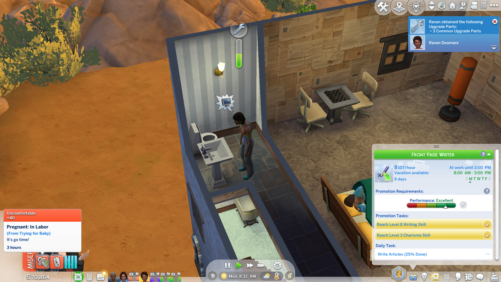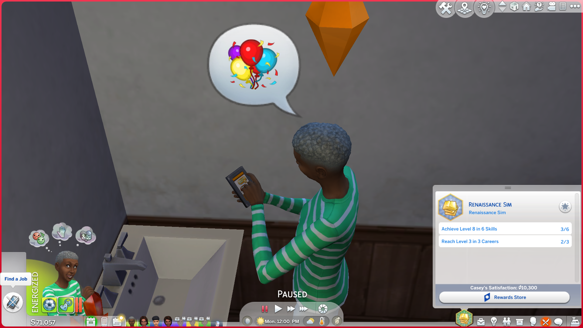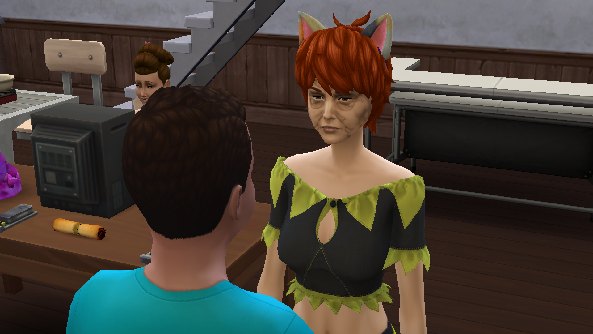 Since Casey apparently plans to live forever, I let her get another job to see if we can get her some aspiration points. We can’t do anything with them, but it’s something to do.