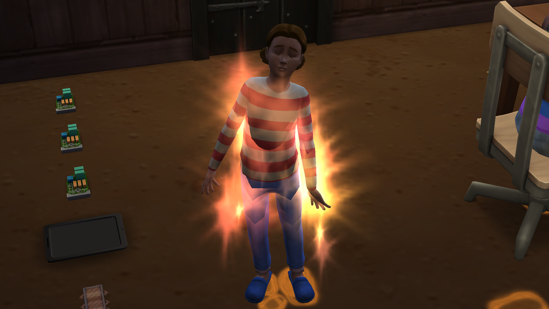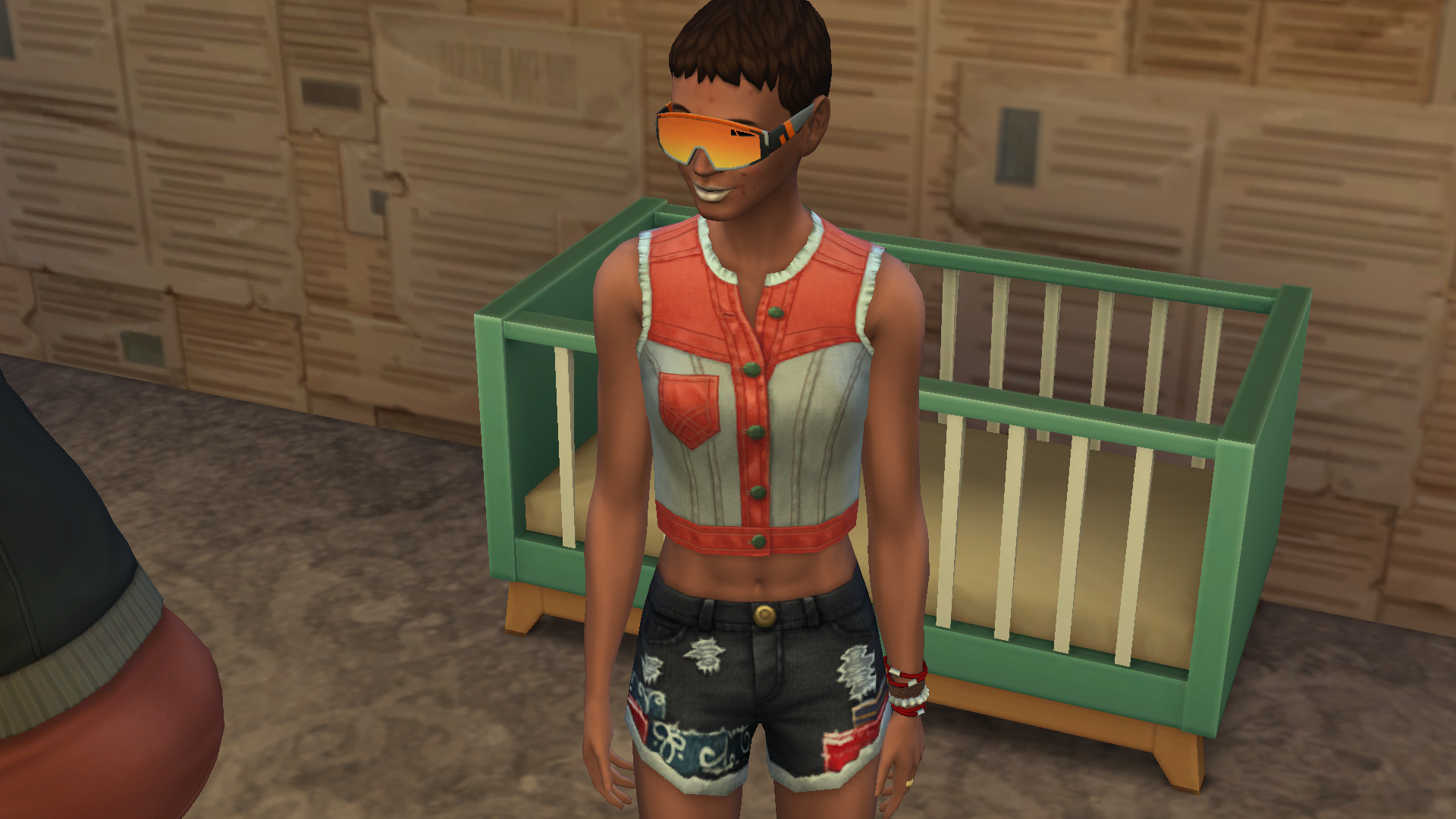 Is there some evil device mass-aging Sims or something? We’ve got the wizened doll reject, now the grey-haired Teen with a grandpa sweater and cane…