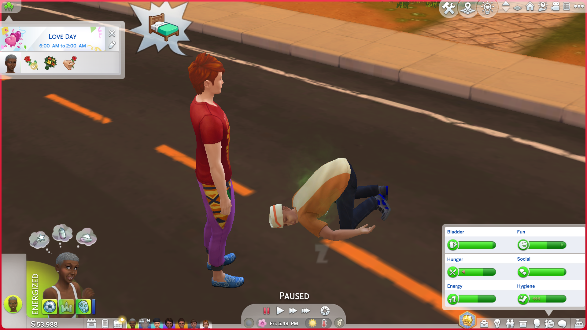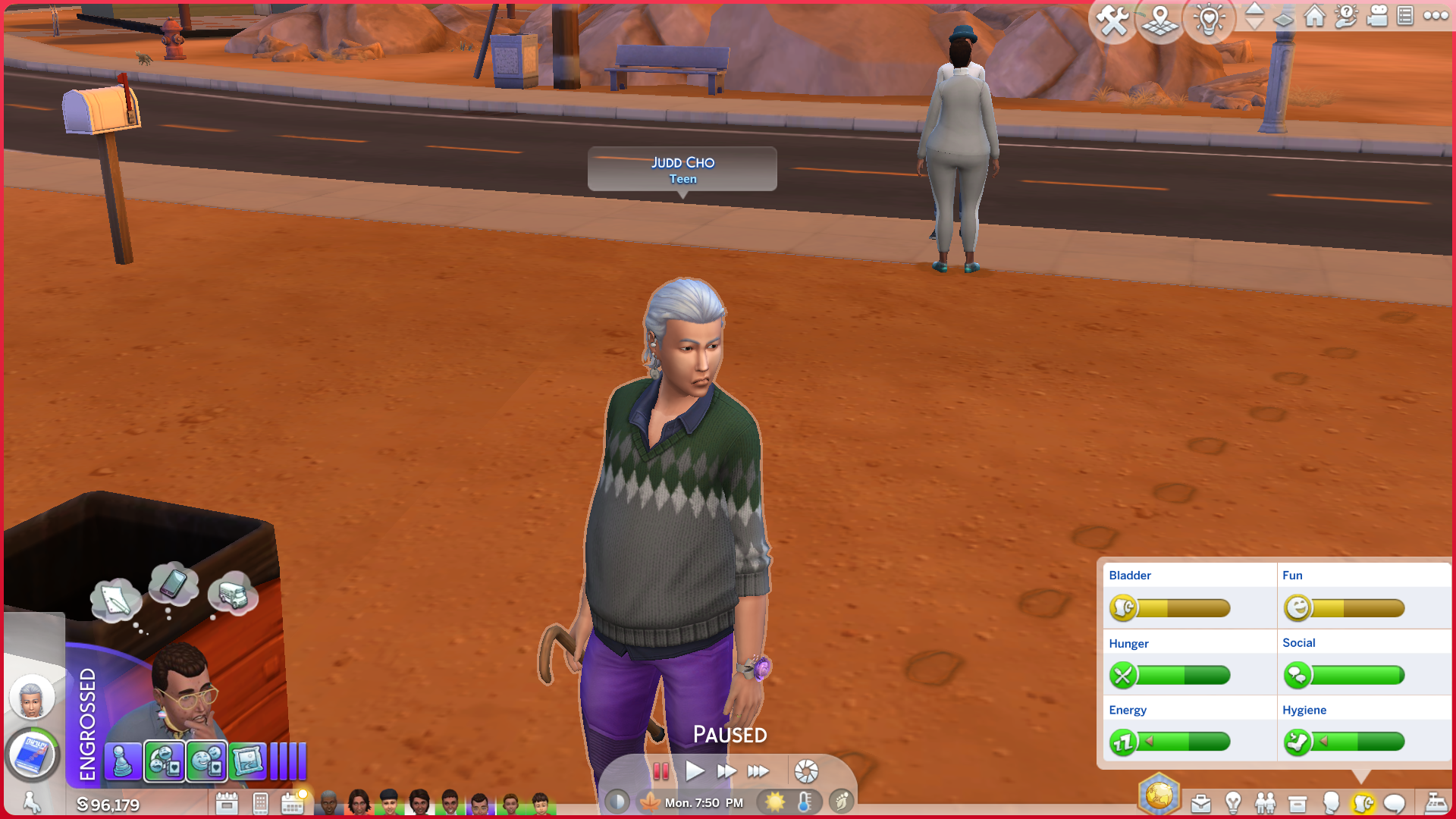 Sometimes townies in my neighbourhood glitch out and stop being able to move. They usually teleport away before they die, but until then, they hang out on the sidewalk or in the streets, getting stinky, tired, and hungry.