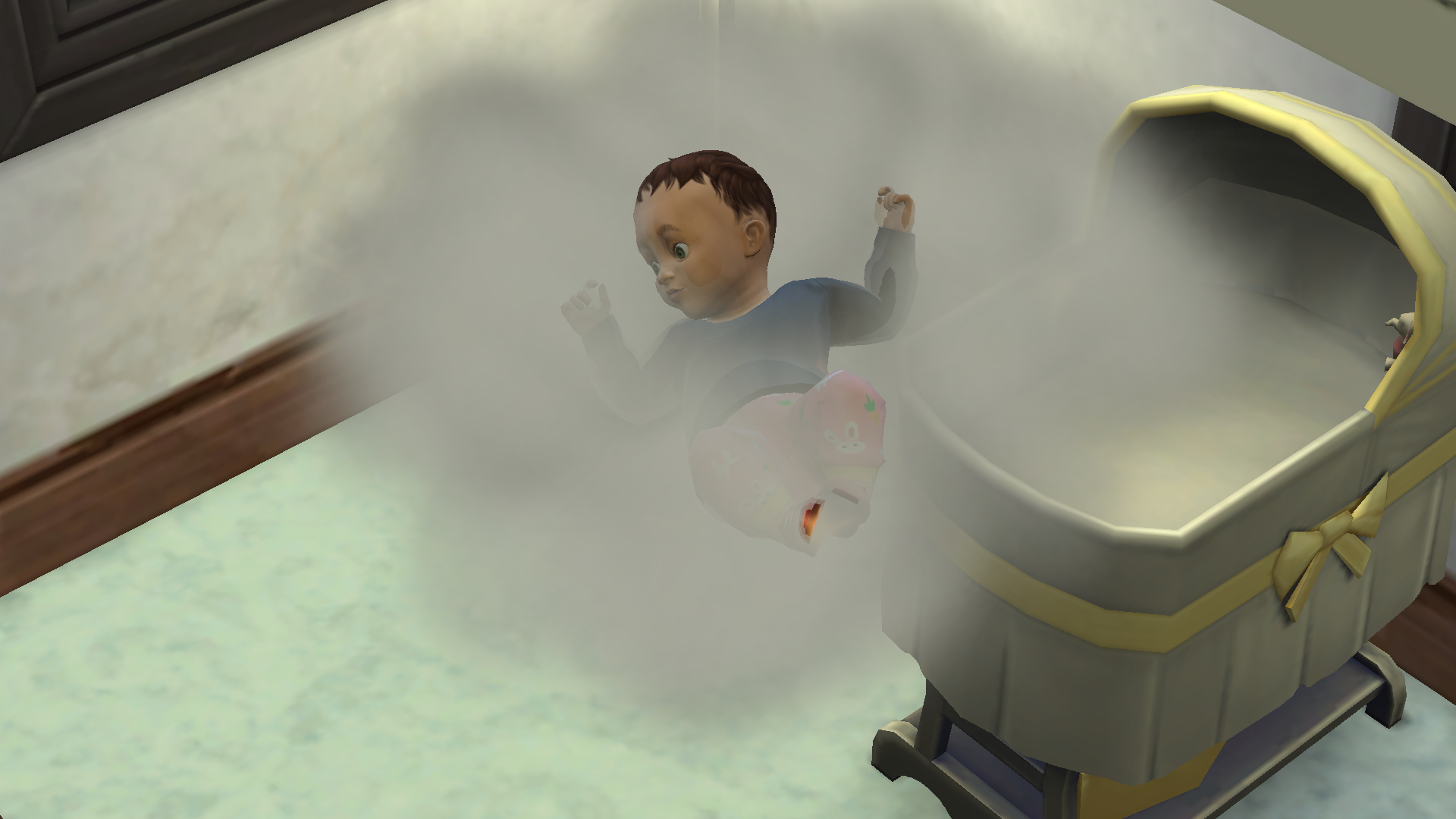 Not to be outdone, Sidney left his bassinet in a poof of wood smoke.