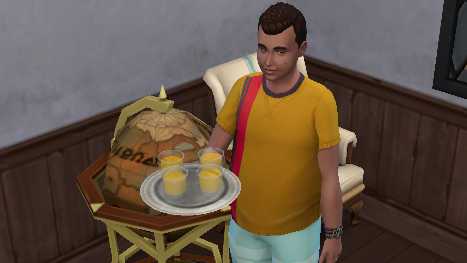 I got this little bar because it fits under the stairs and I figured Adele could use it for Mixology, as that is the career I have chosen for her. Unfortunately for us, you don’t really gain Mixology skill from it. What a bummer.