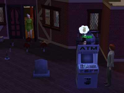 We start off with a tiny photo of a Tombstone of L&D and Mod the Sims’ ATM. My Sims can pay their taxes, and I can age up jailbait. Life is good.