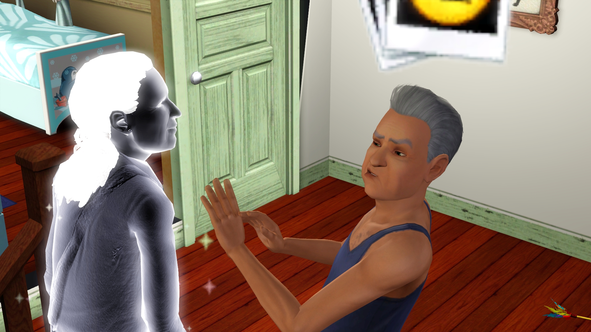 “Oh, hello little guy! Did the mean spirits scare you?”
