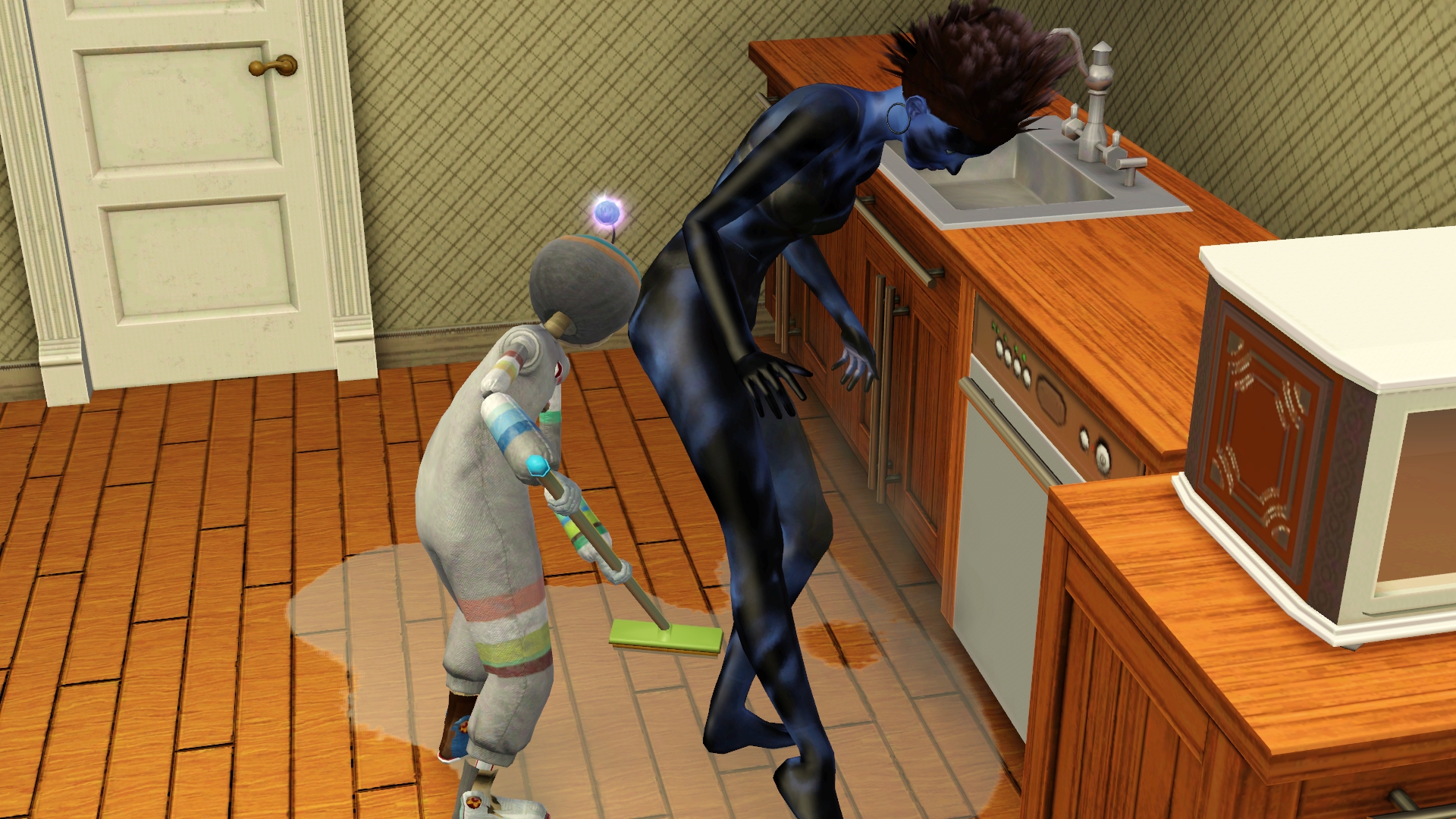So I sent her and her trusty mop sidekick to repair the dishwasher. Which apparently is just always broken no matter what house we’re in.