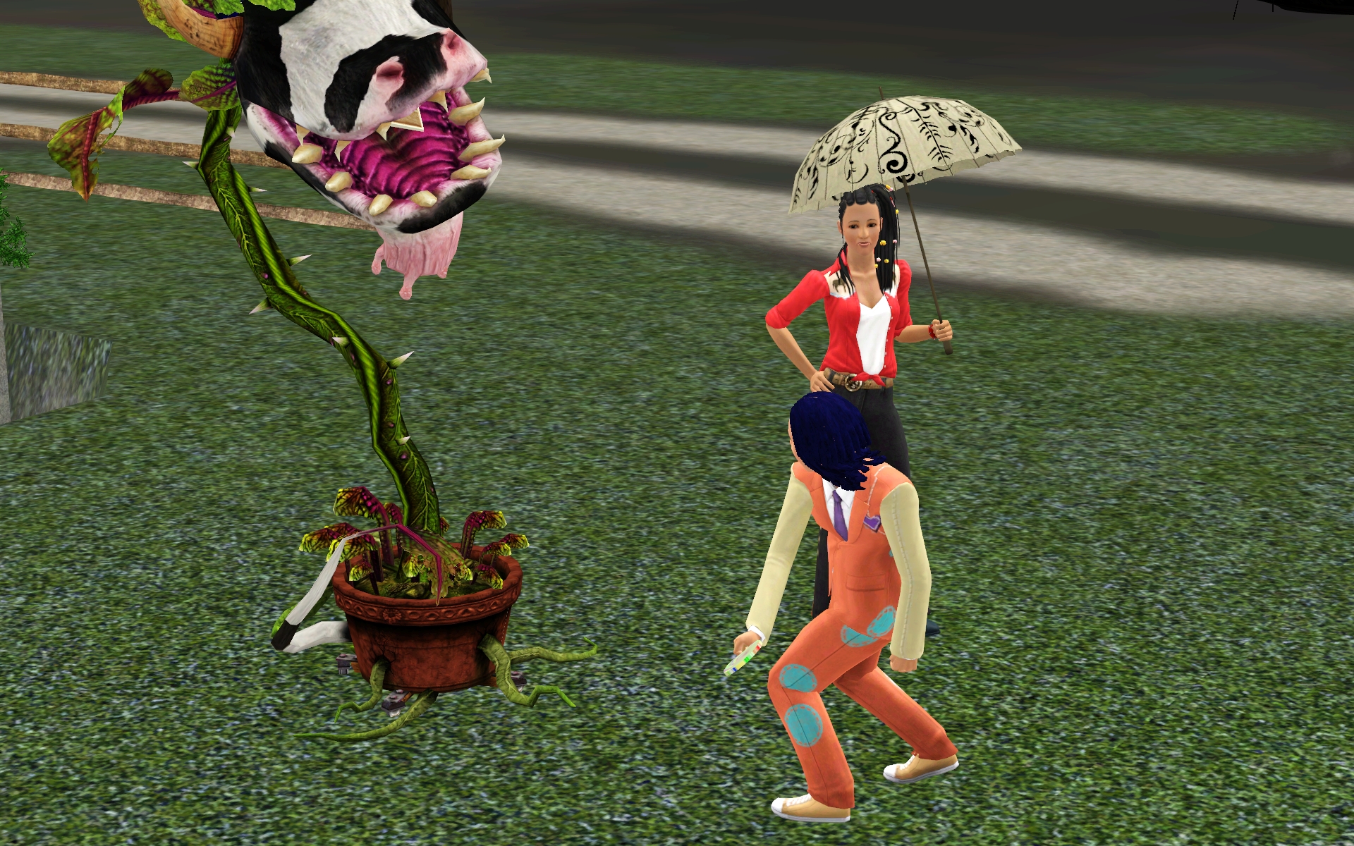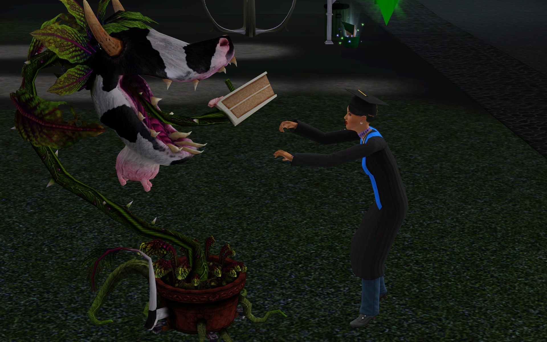 “Heh, revenge is sweet. Eat him, Bessy, eat him!”