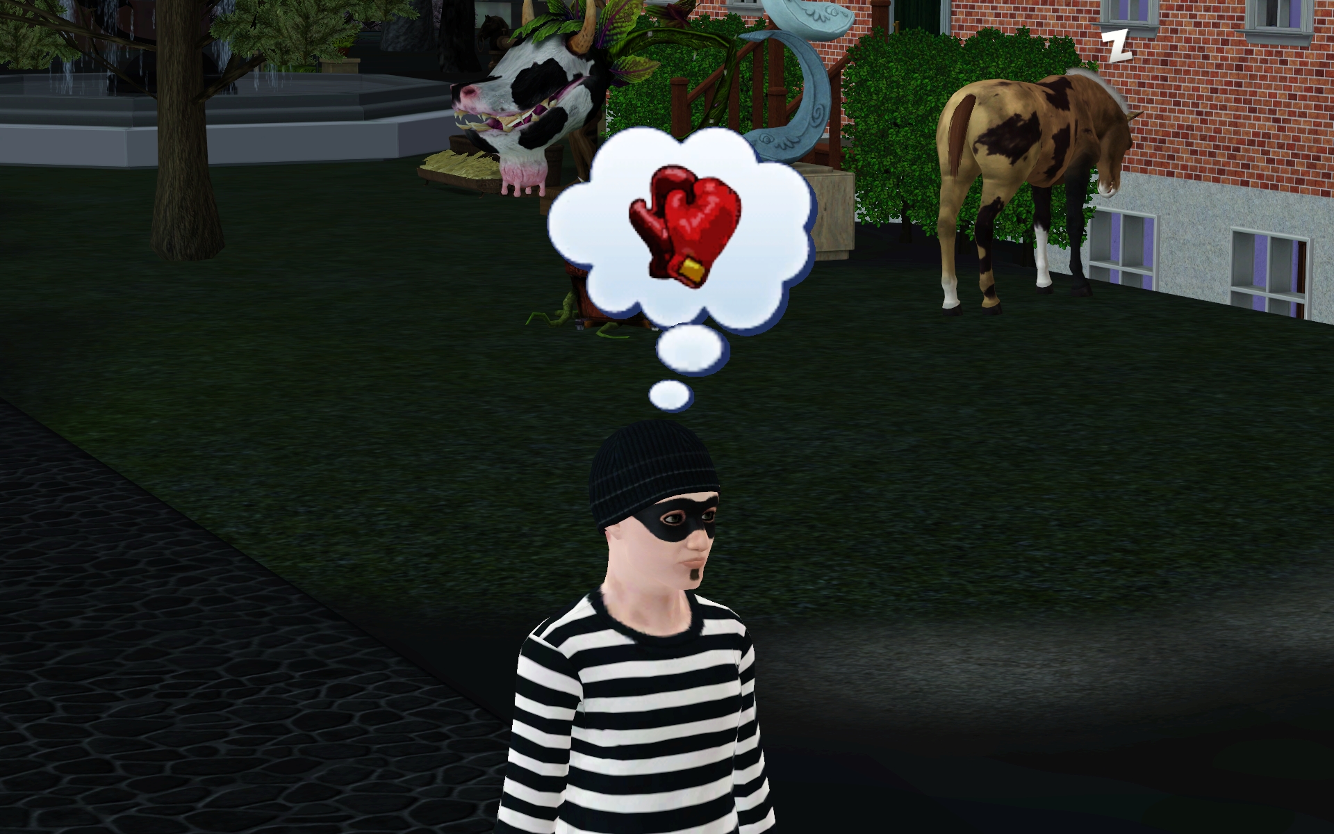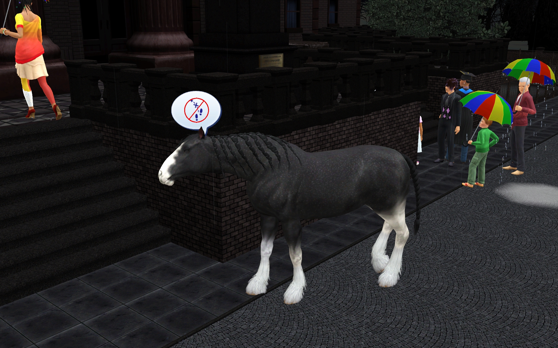 “Um, why am I at the town hall? And why doesn’t this horse have any eyes?”