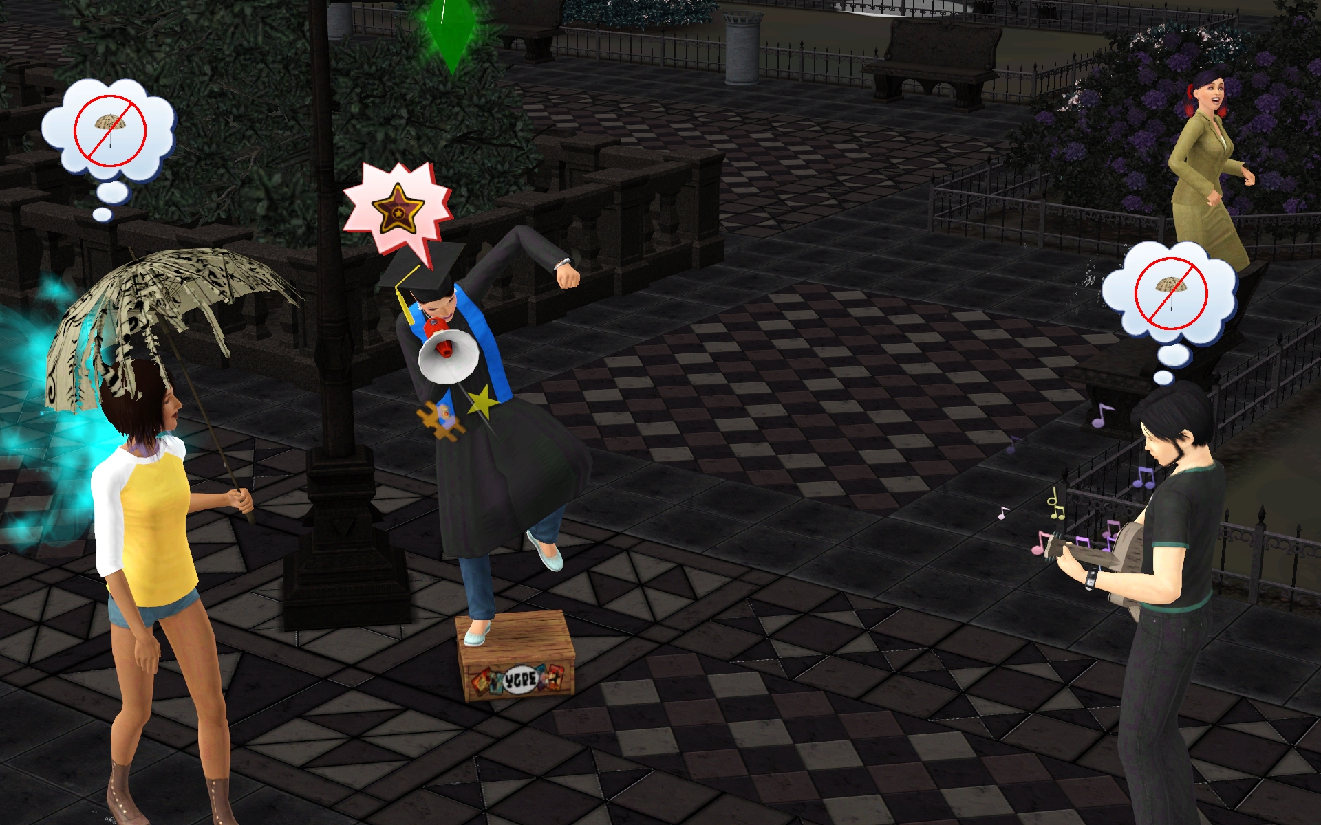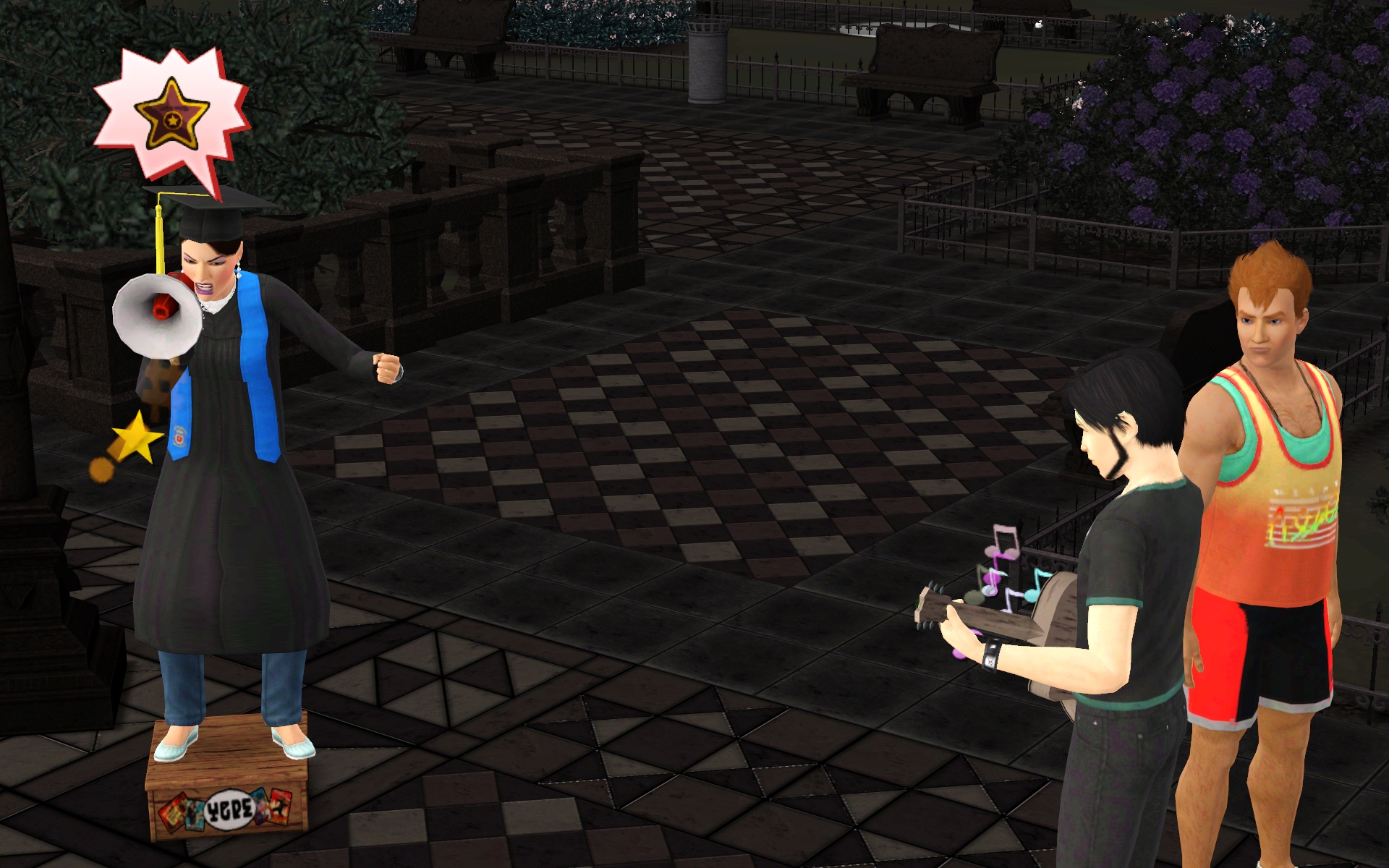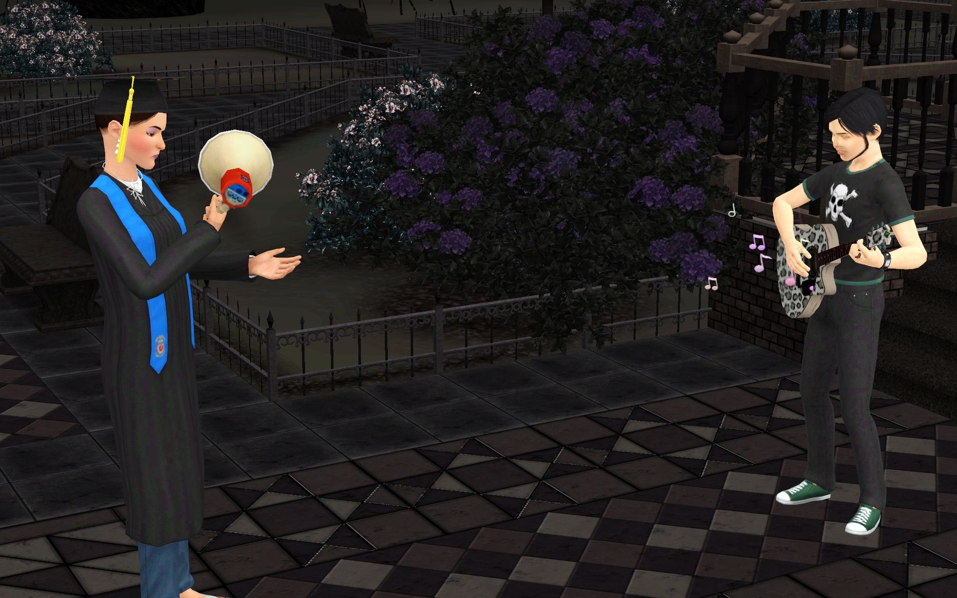 “Hmmph, why isn’t this working? Can’t a girl shout in a megaphone near a goth guitarist around here?”