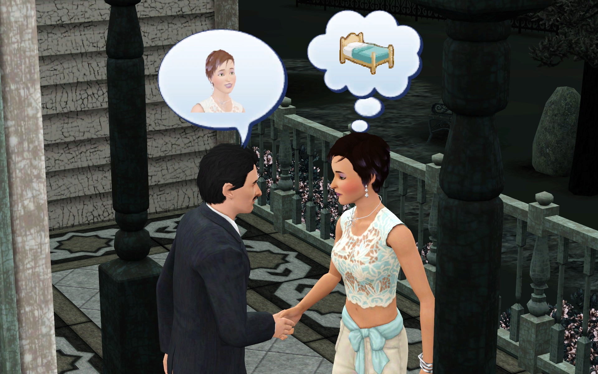 Yeah, so. I had many pictures from their previous house. So many. Two sets of birthdays. Them in a new Sunlit Tides. All kinds of things. But Error code 12 dogged me, and in light of the planned location for my next TS3 legacy, I decided one final move was in order: Midnight Hollow.